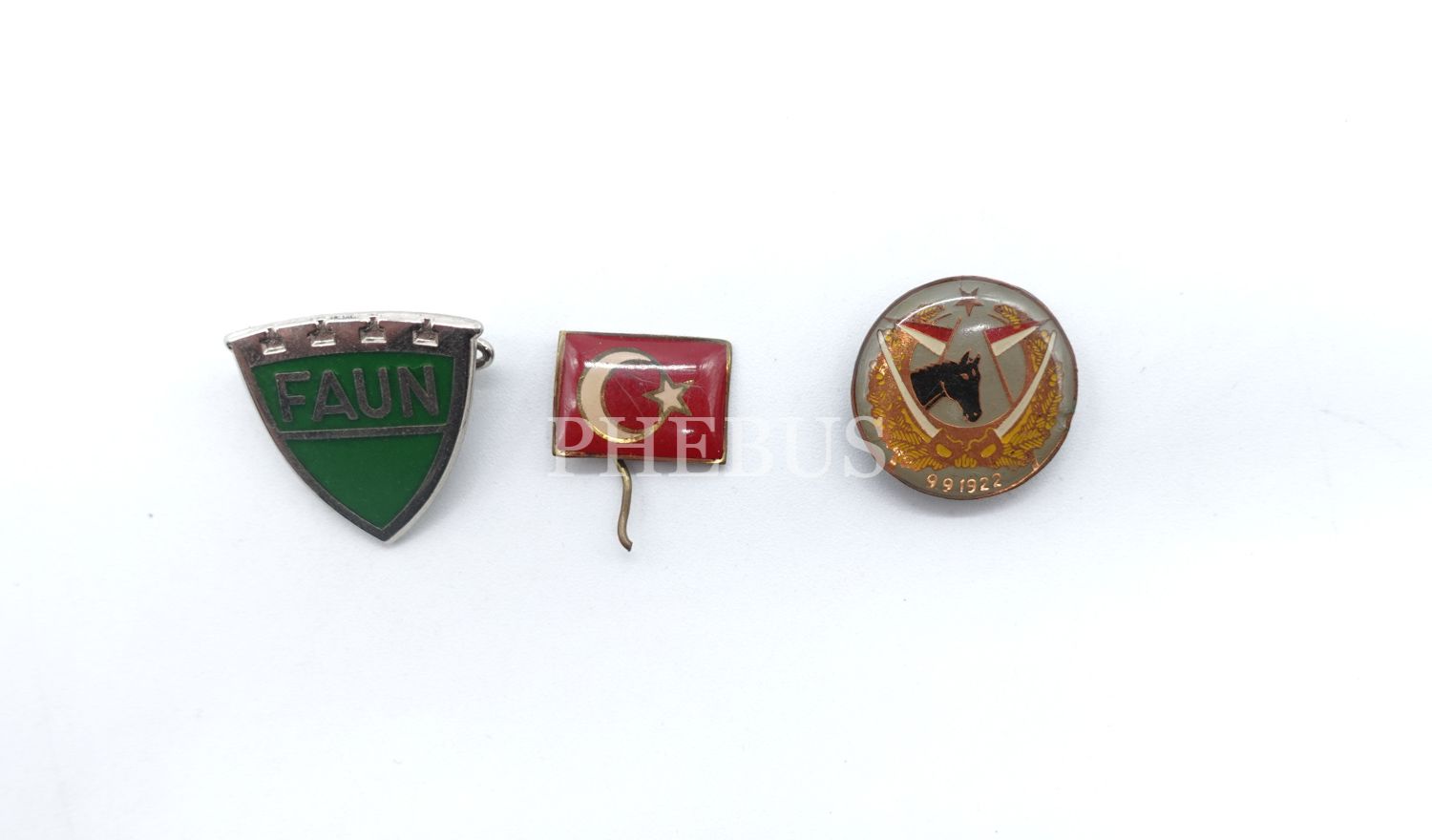Türk Bayrağı görseli ve "FAUN" yazılı rozetin bulnduğu 3 adet rozet lotu