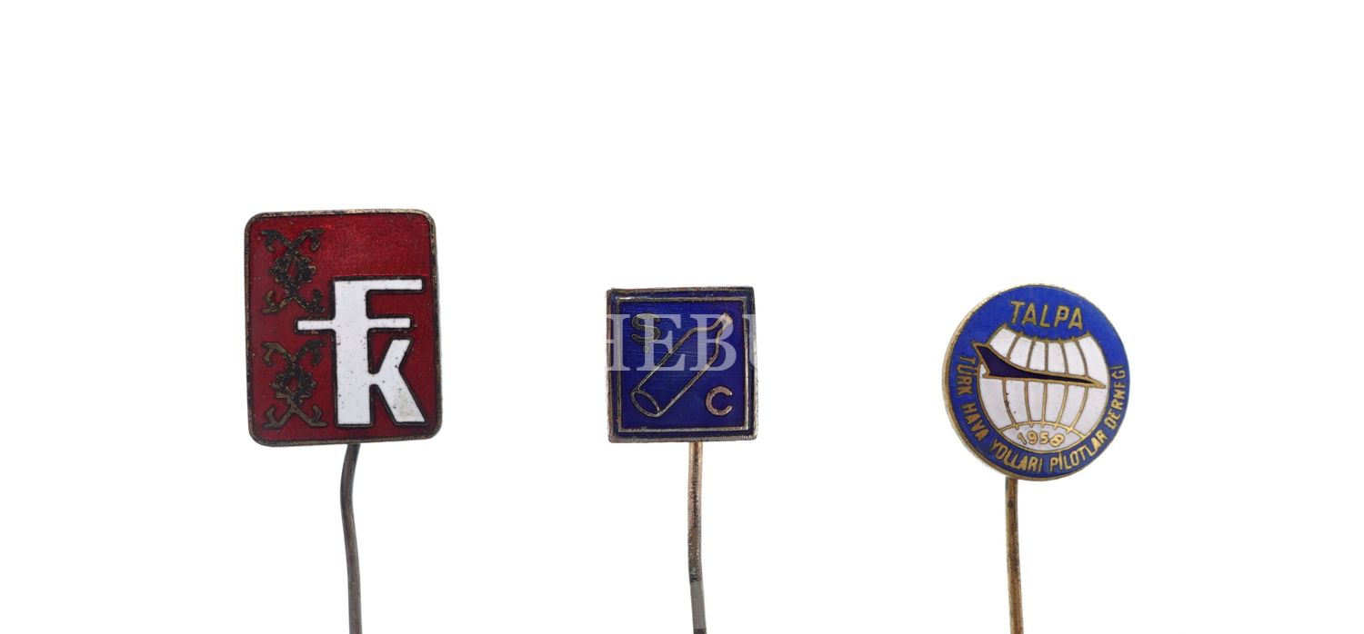 "Türk Hava Yolları Pilotlar Cemiyeti" yazılı rozetin bulunduğu 3 adet rozet lotu