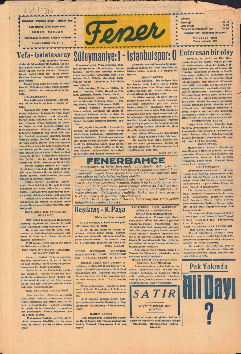 Fener spor dergisi, 1948, resimli, haliyle, 8 sayfa, 29x41 cm