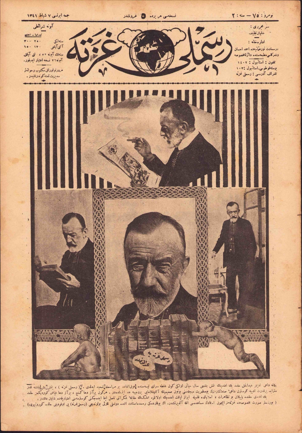 Osmanlıca Resimli Gazete, 1341 tarihli, kapak Abdülhak Hamid bey, 8 sayfa, 28x40 cm