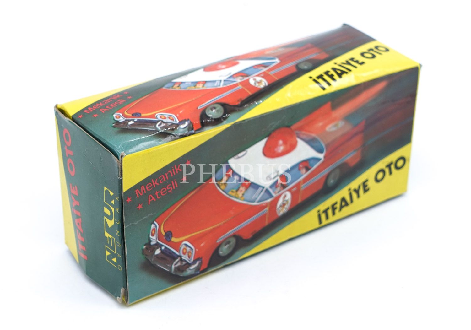Ne-Kur marka, orijinal kutusunda teneke itfaiye aracı, 17x7x6 cm...
