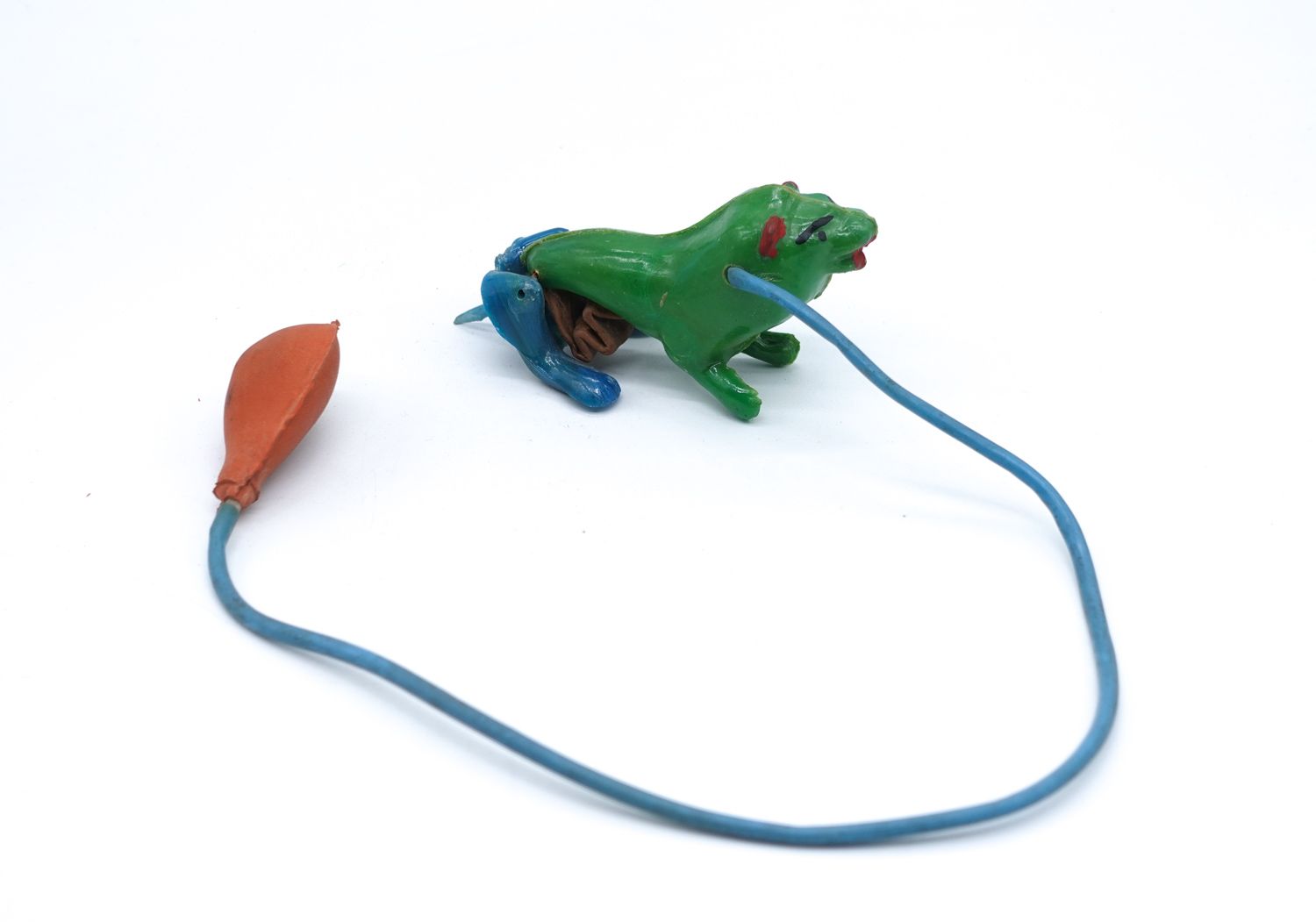 Plastikten mamül, hava pompası desteği ile sıçrama mekanizması bulunan aslan, 10x5x4 cm...