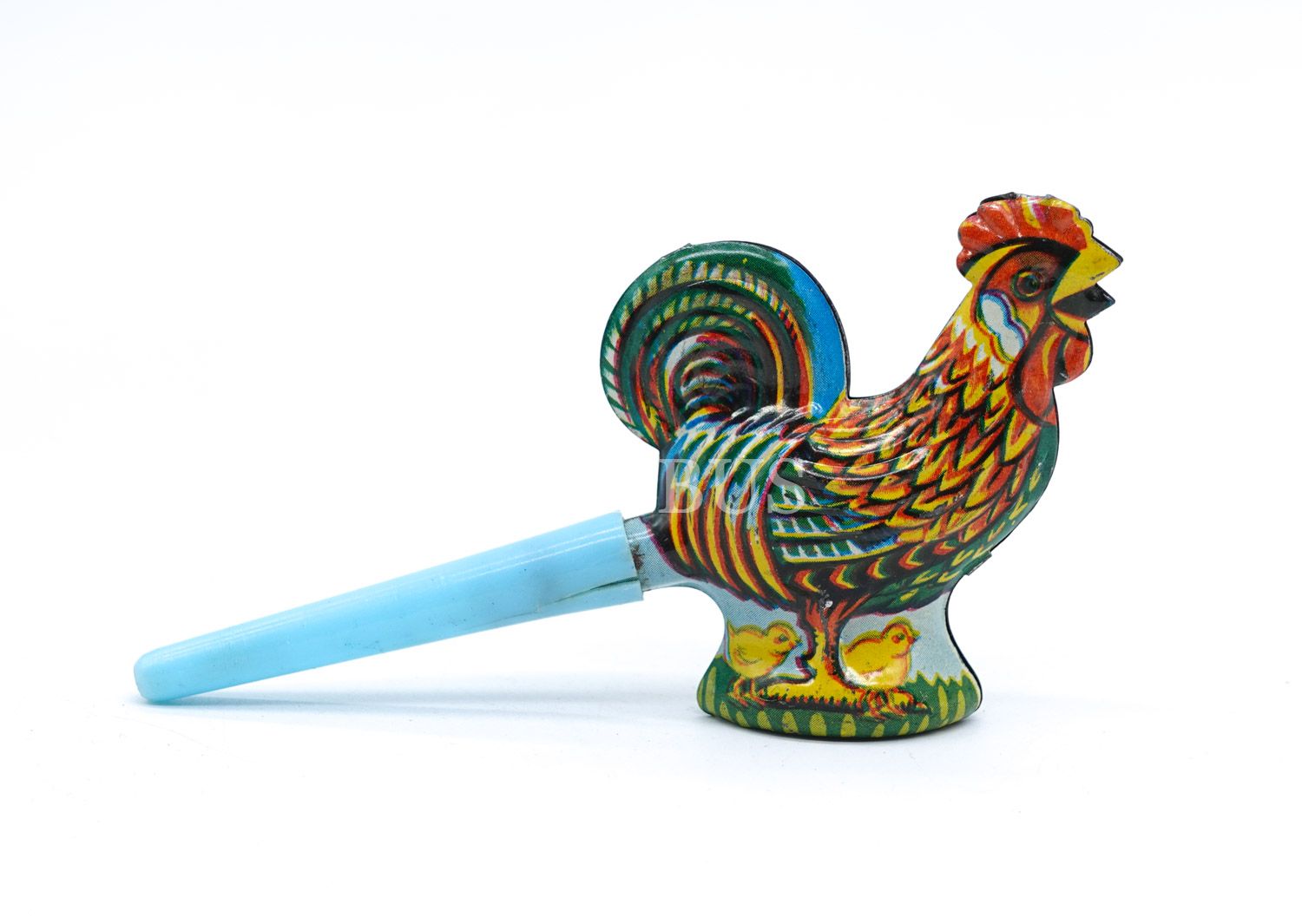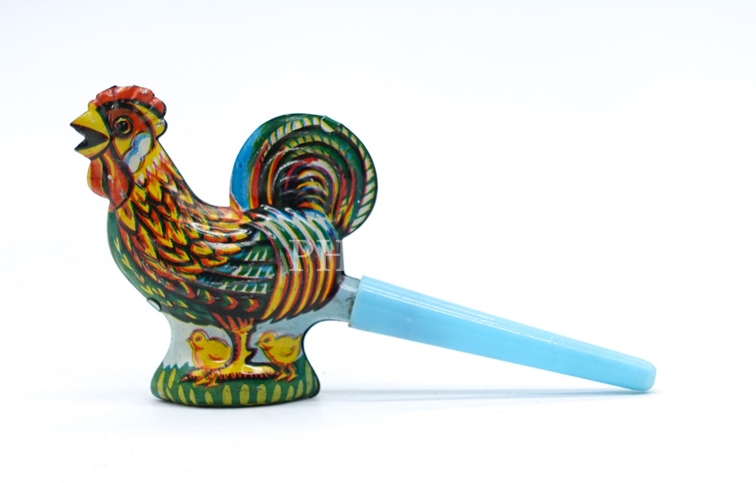 Altın marka horoz formunda teneke düdük, 13x6 cm...
