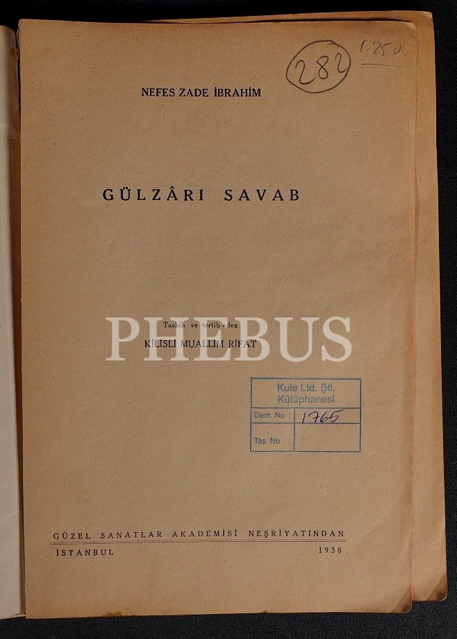 GÜLZARI SAVAB, Kilisli Muallim Rifat, 1939, Güzel Sanatlar Akademisi Neşriyatı, 120 sayfa, 17x24 cm...