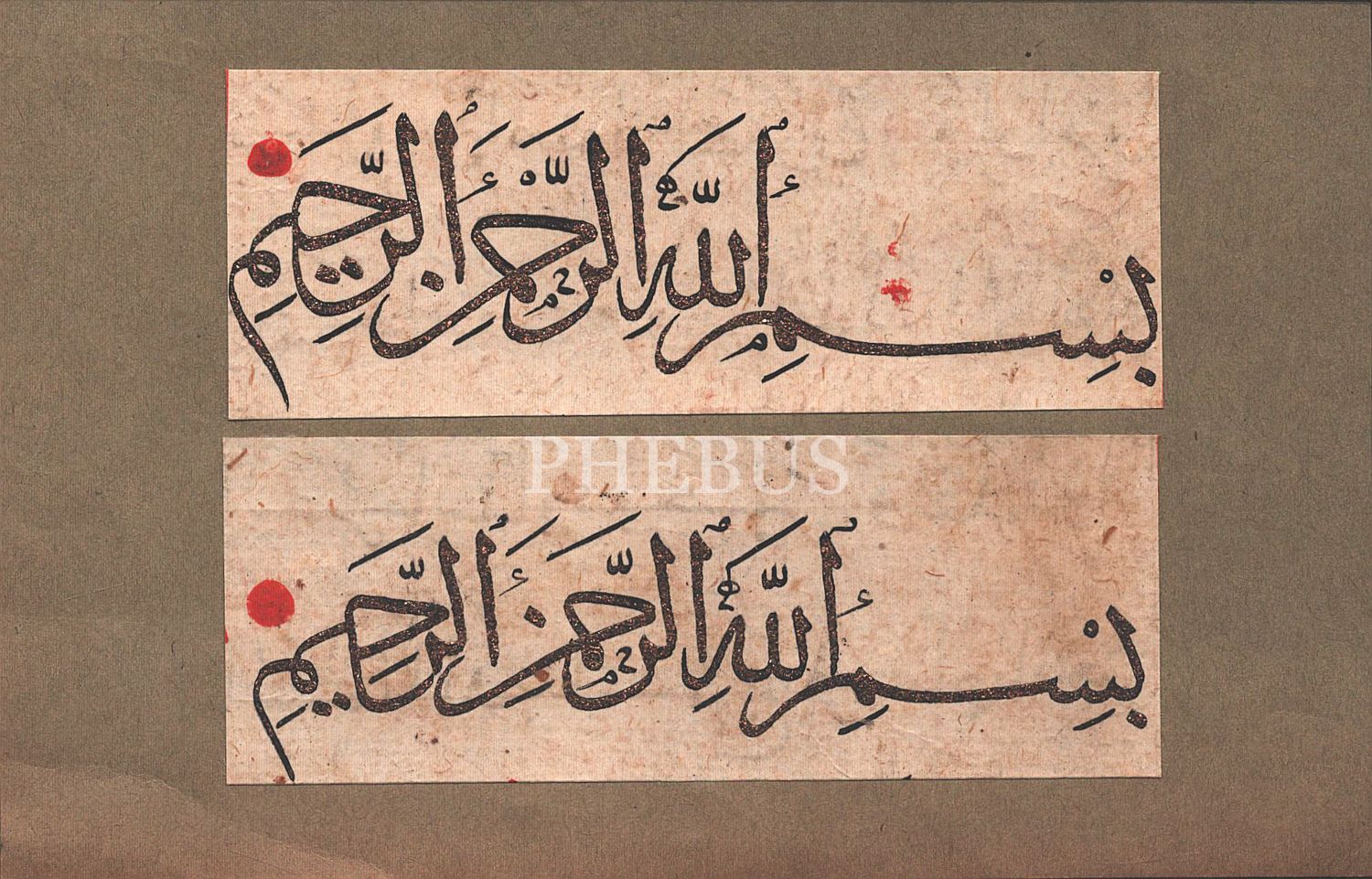 Erken dönem, hoca işi, altın rıhlı sülüs Besmele-i Şerife, 16x10 cm...