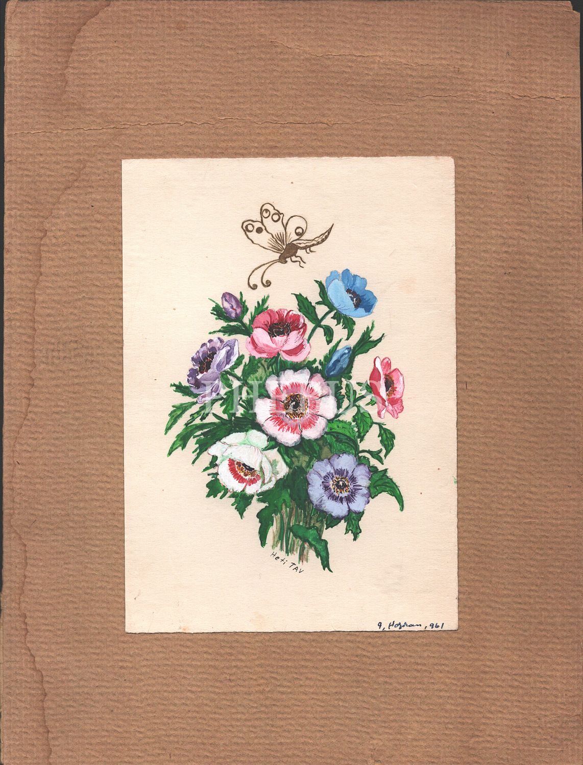 Sühey Ünver´in talebesi Heti Tav imzalı çiçek çalışması, 9 Haziran 1961, 22x29 cm...
