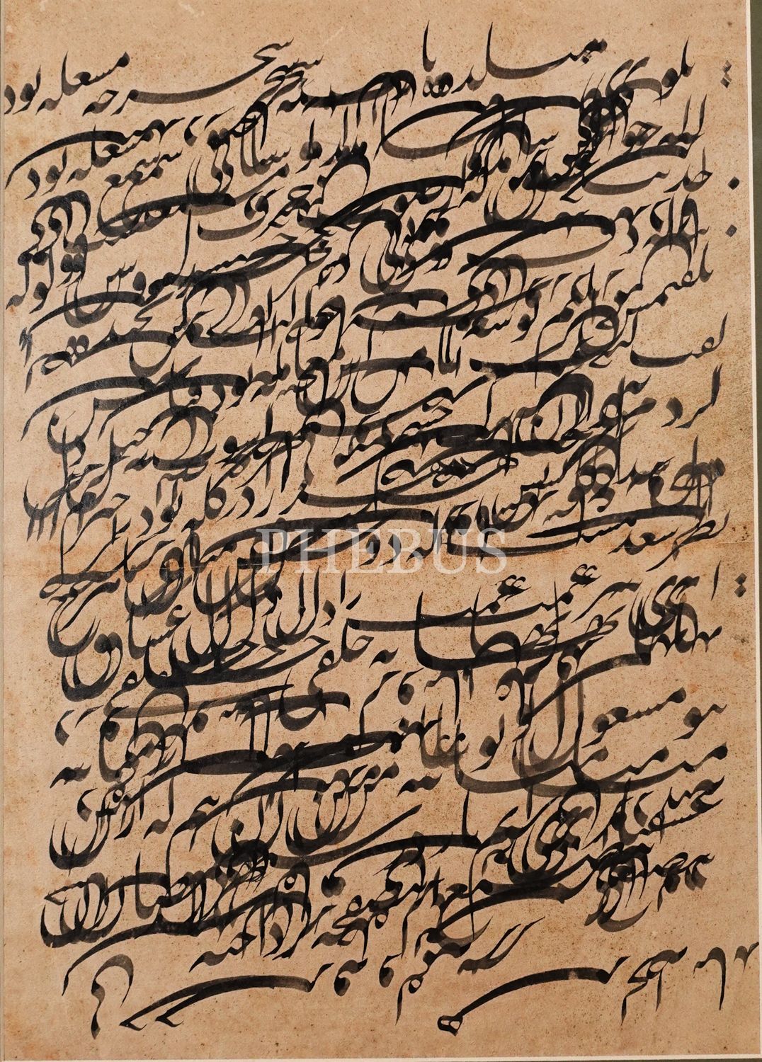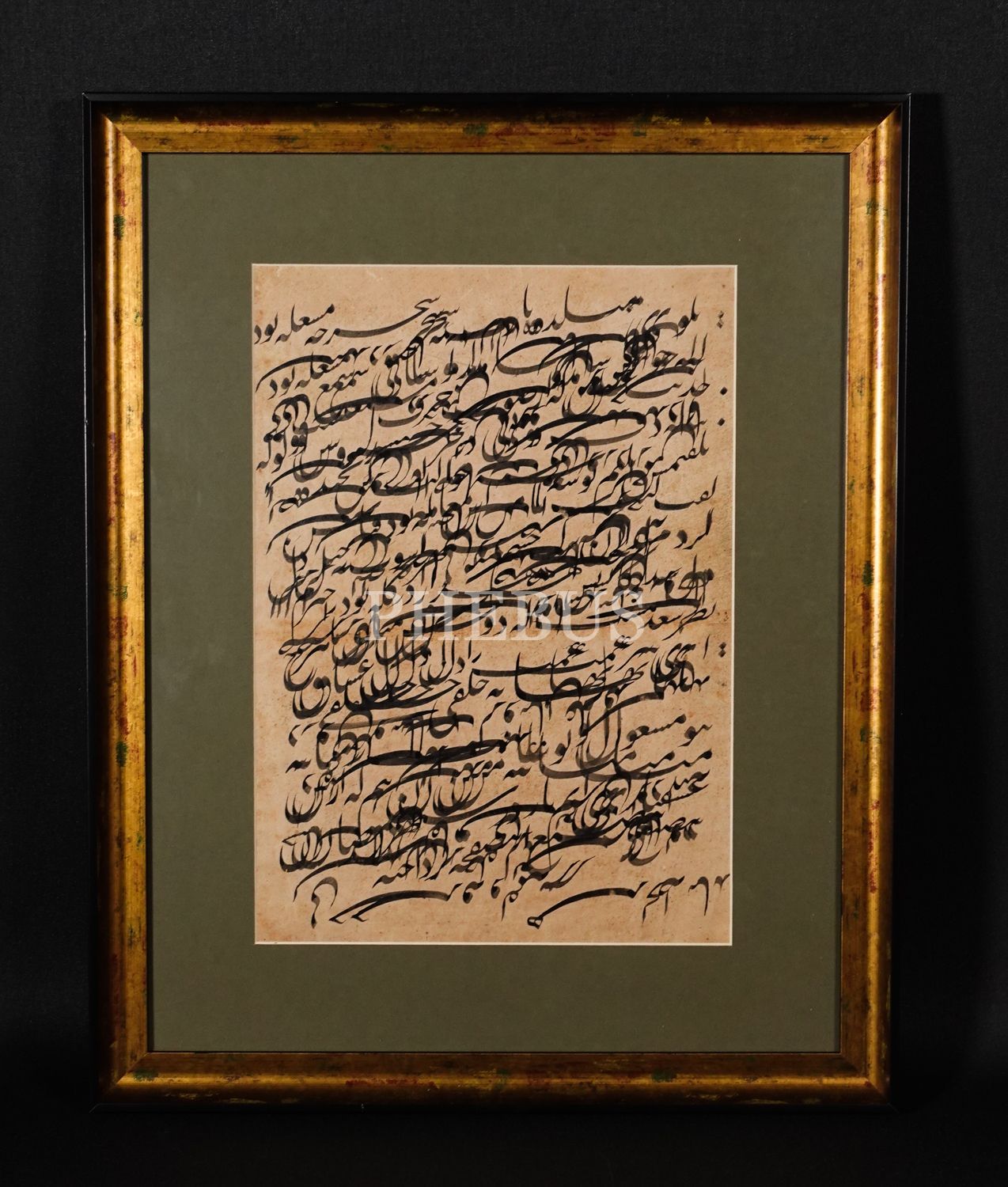 Çerçeve içerisinde Ta´lik karalama çalışması, yazı: 24x35 cm, çerçeve: 40x50 cm...