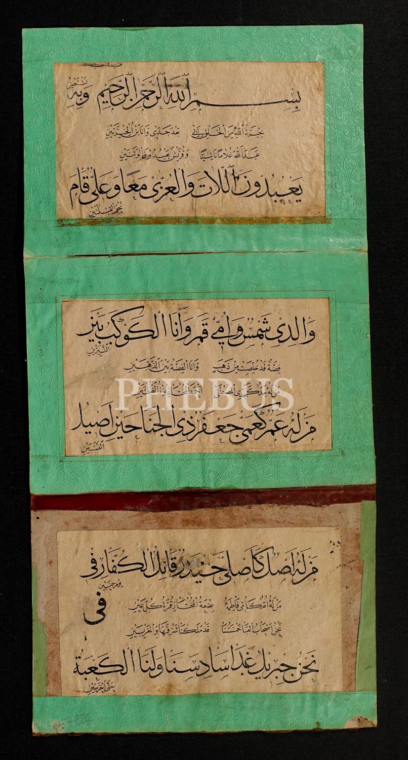 Erken dönem, hoca işi, 3 sayfa sülüs, nesih kaside murakkası, 55x27 cm...