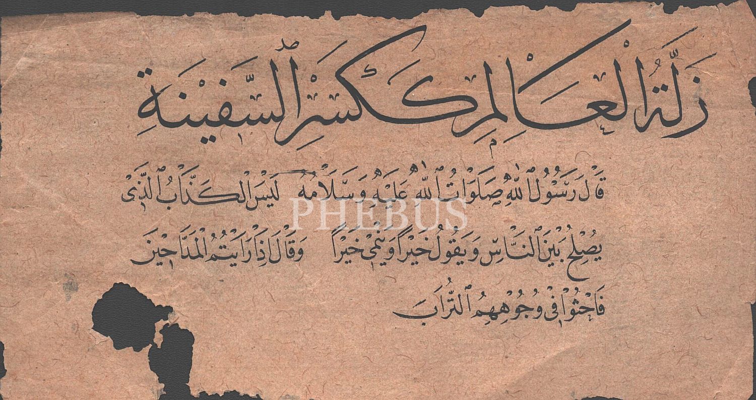 Alimin hatası geminin delinmesi gibidir anlamına gelen Hadis-i Şerif yazılıdır. *Sol alt kısımında yırtık vardır.