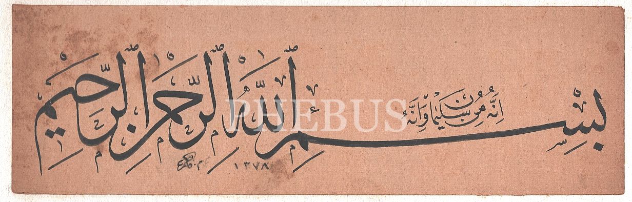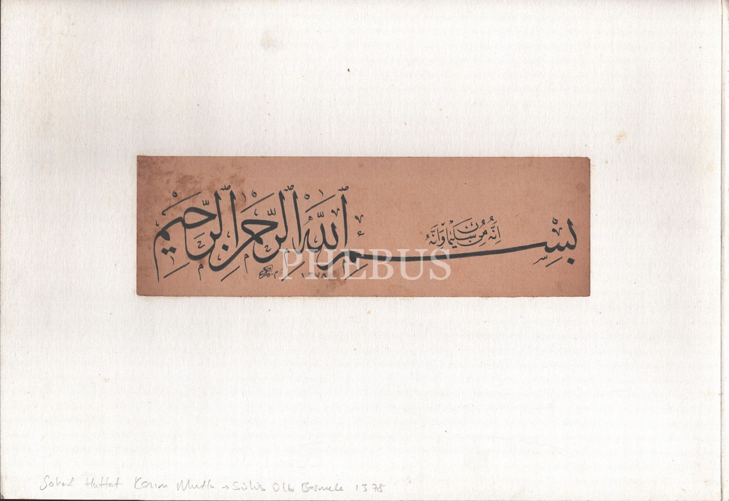 M. Kazım [Mutlu] ketebeli, sülüs oklu Besmele-i Şerife, paspartu: 43x30 cm, yazı: 26x8 cm...