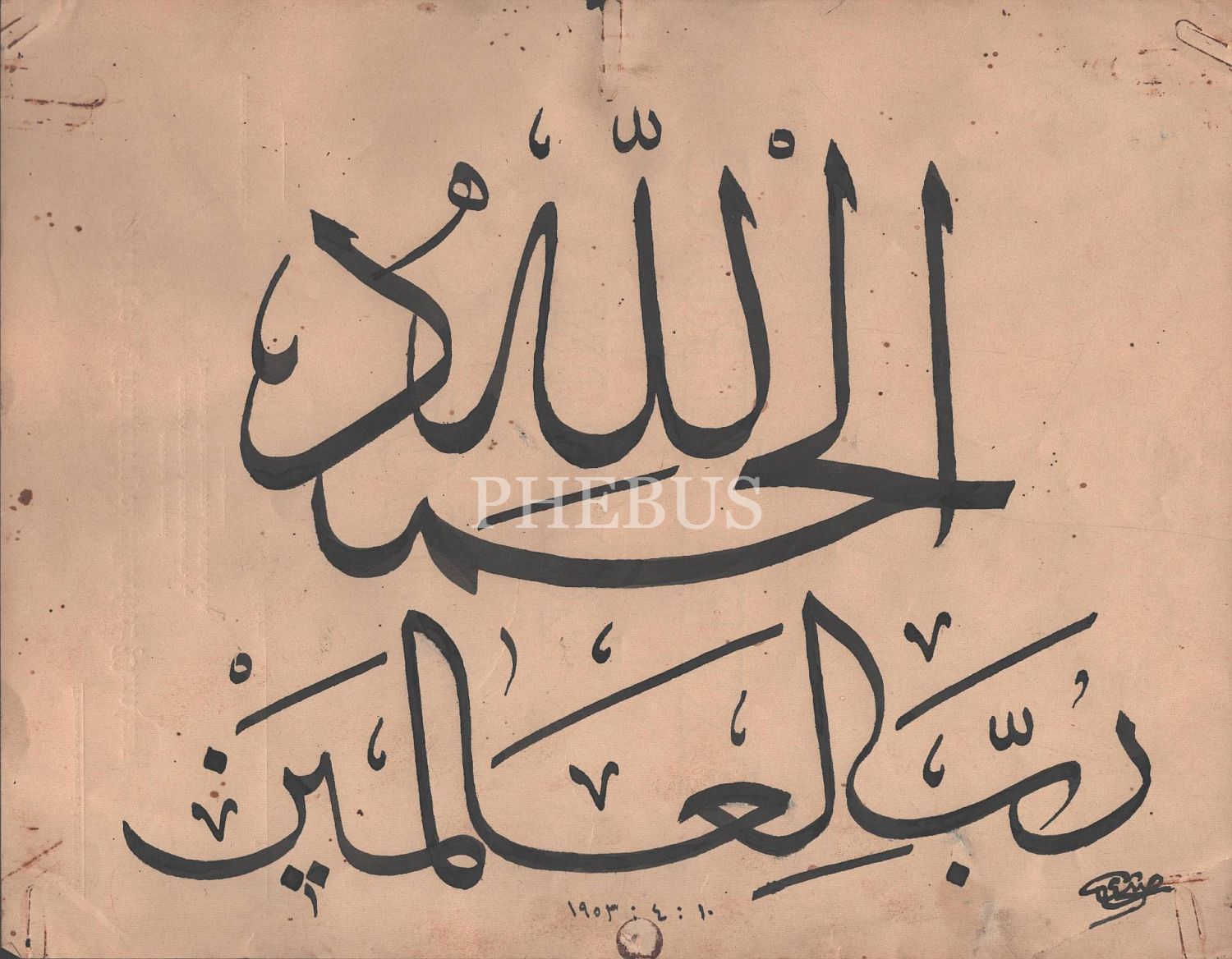 Subhi ketebeli, sülüs yazı, 1953, 28x22 cm...