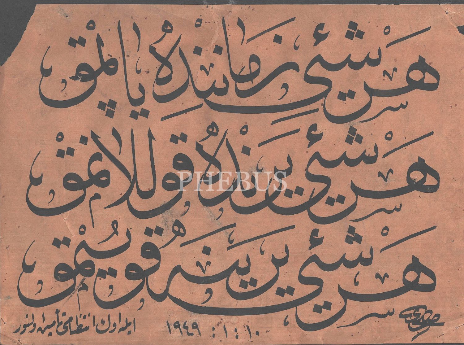 Subhi ketebeli, sülüs yazı, 1949, 29x21 cm...