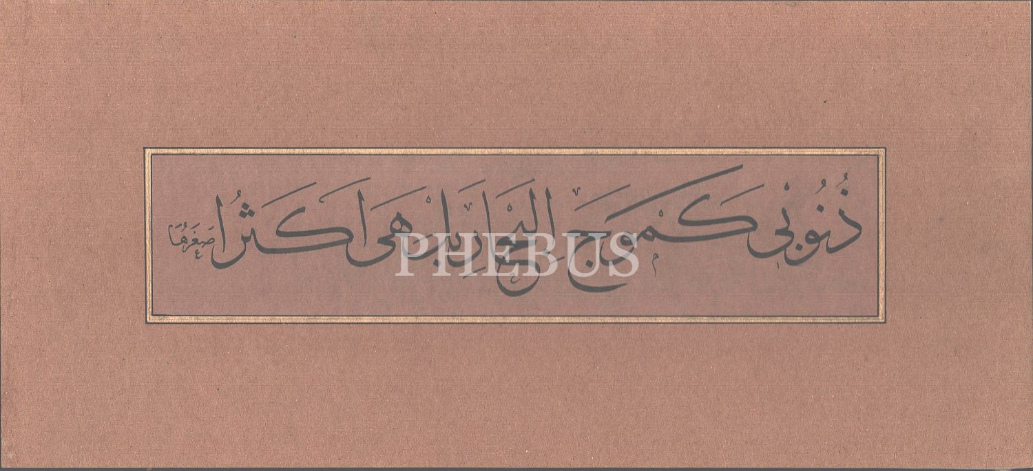 Hoca işi, sülüs yazı, paspartu: 37x17 cm, yazı: 26x6 cm...