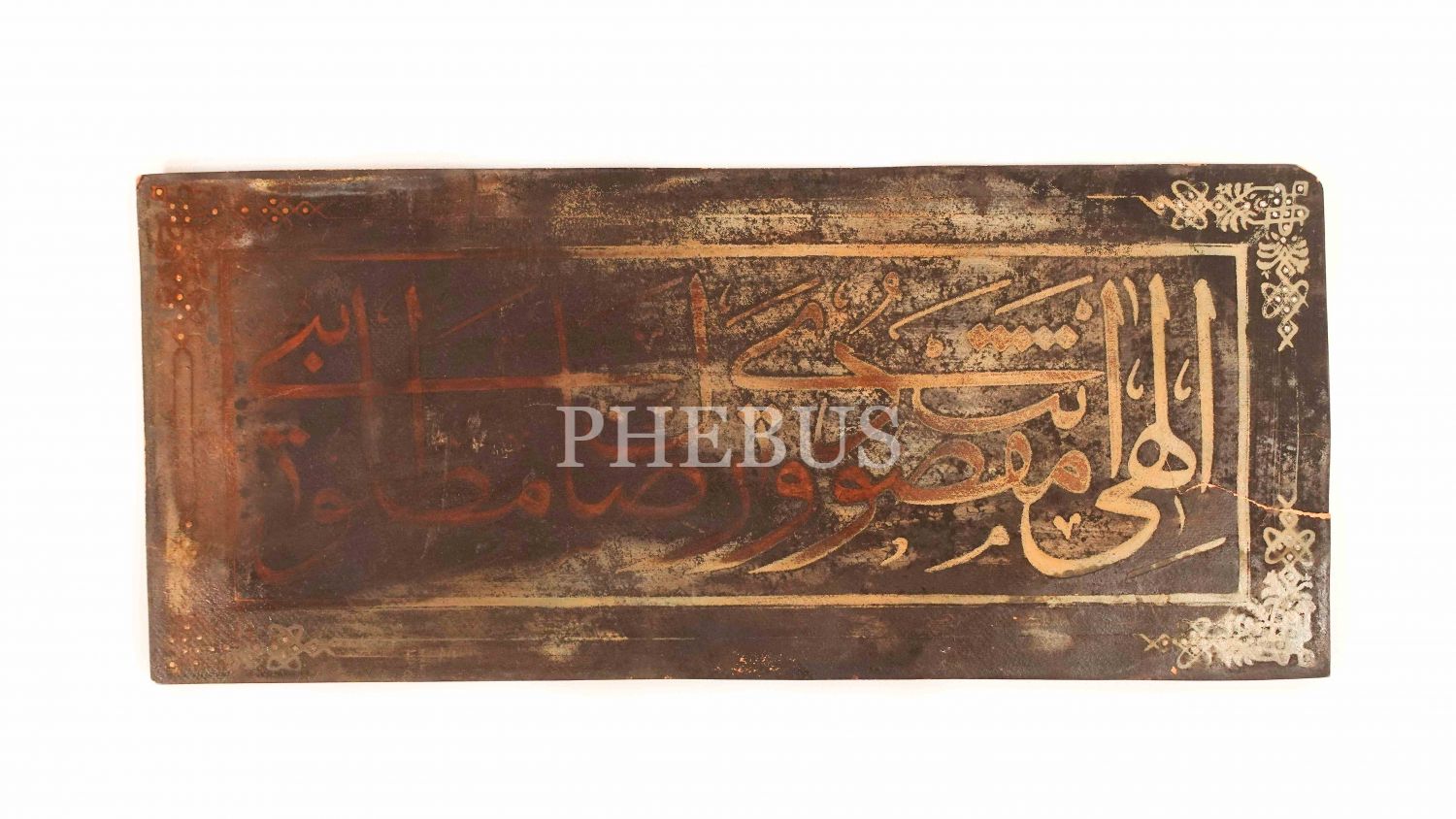 Yazı, "Ya İlahî, maksadım sensin ve amacım senin rızanı kazanmaktır." anlamına gelen, ´´İlahi Ente Maksudi ve Rızake Matlubi´´ şeklindedir. *Levhanın sağ köşesinde çatlak vardır.