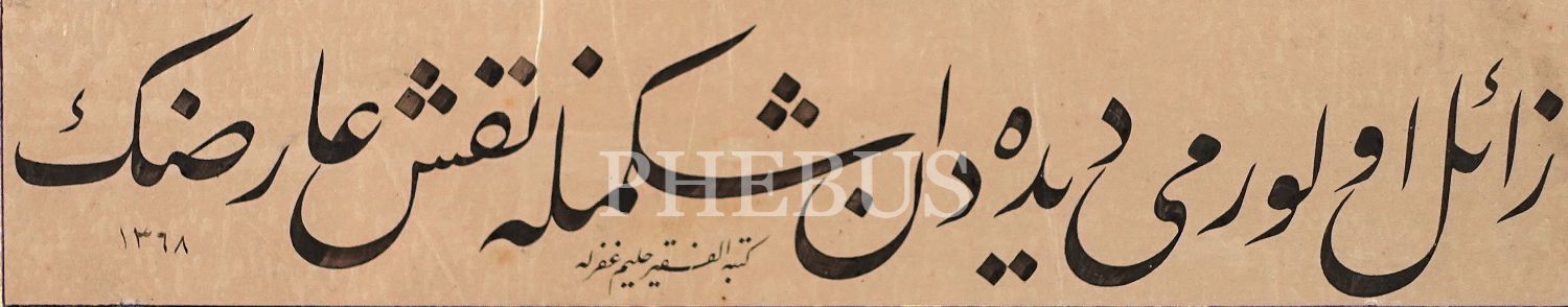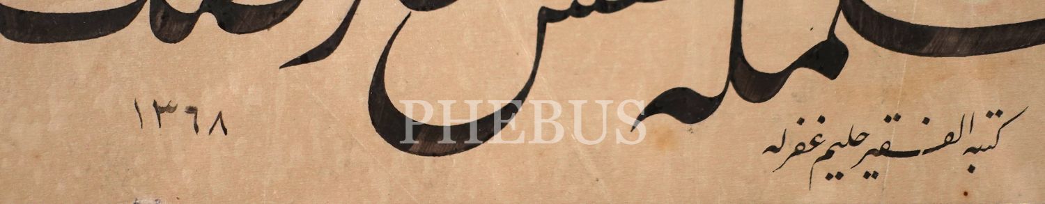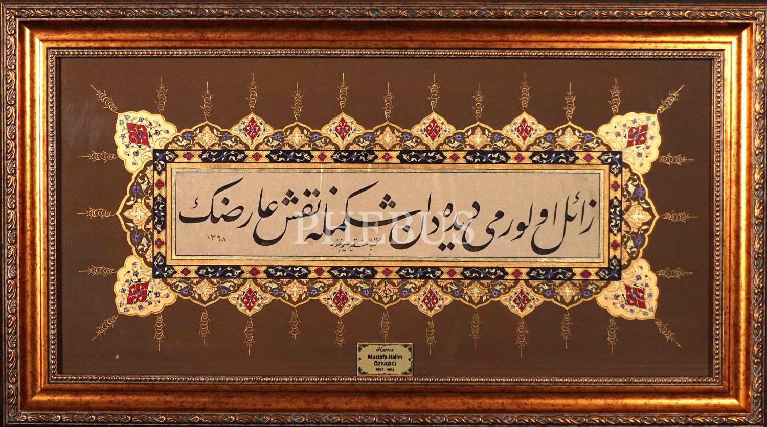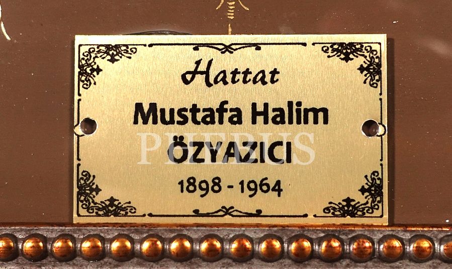 Halim [Özyazıcı] ketebeli, tezhipli, celi ta´lik yazı, 1368, çerçeve: 68x38 cm, yazı, 48x18 cm...
