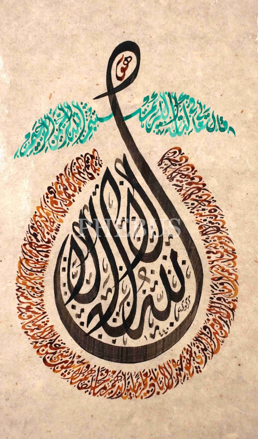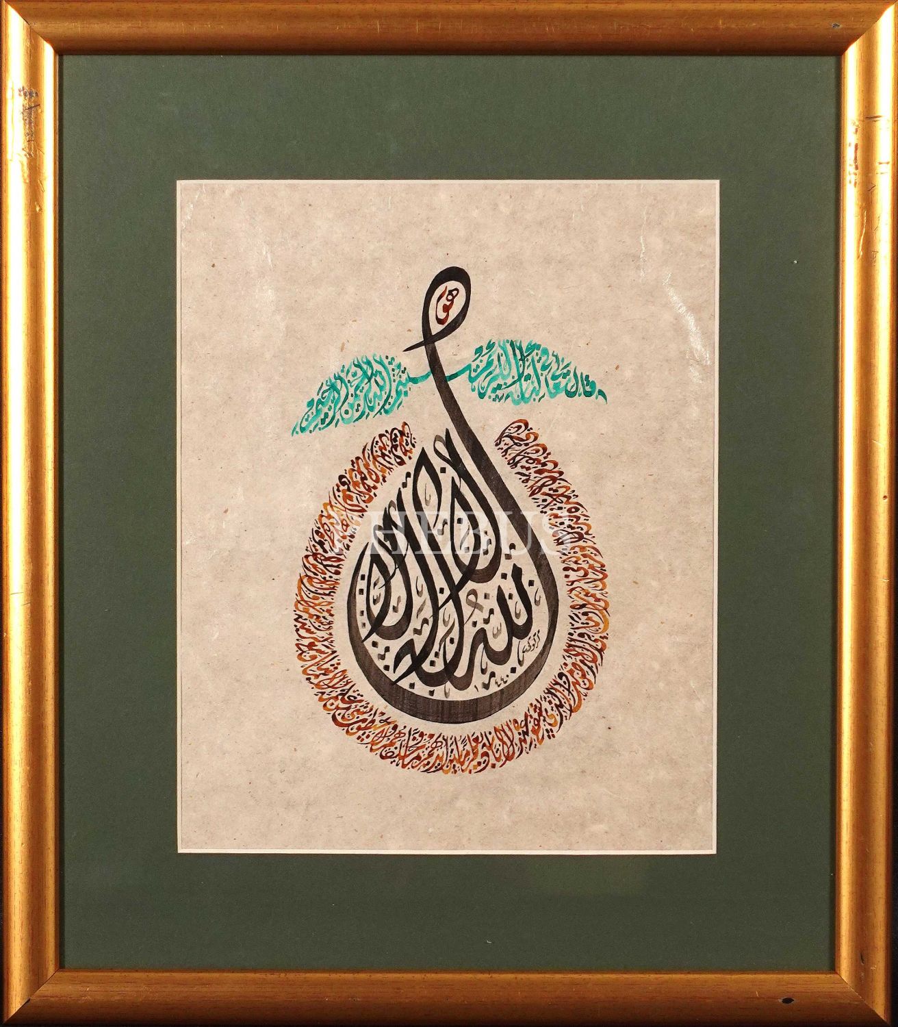 Hadi Kerkükî ketebeli, armudî formda divanî yazı, 1440, 34x39 cm...
