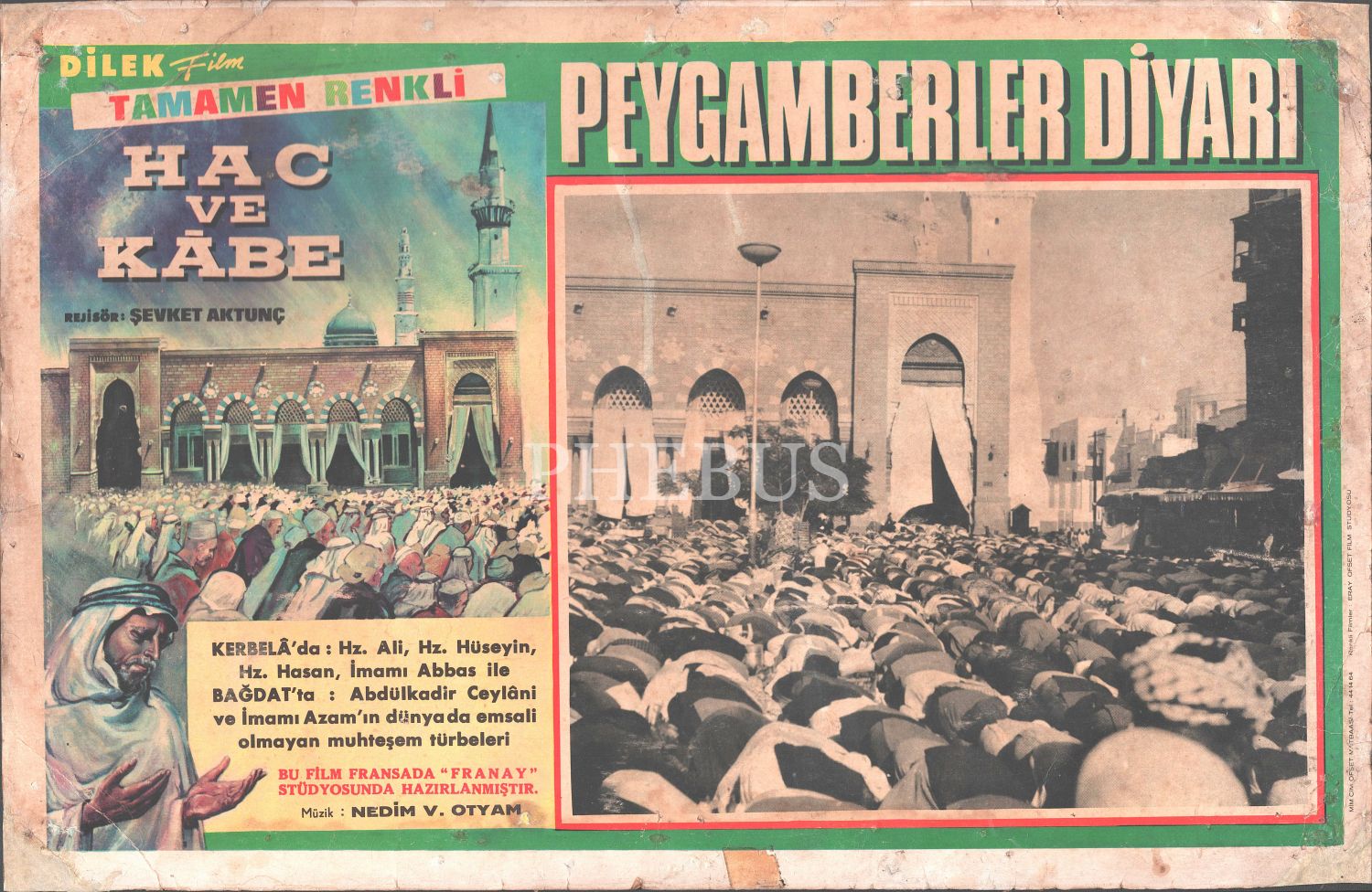 Hac ve Kabe konulu PEYGAMBERLER DİYARI filminin lobi kartı, rejisör: Şevket Aktunç, müzik: Nedim V. Otyam, Mim Cim Ofset Matbaası, 28x42 cm...