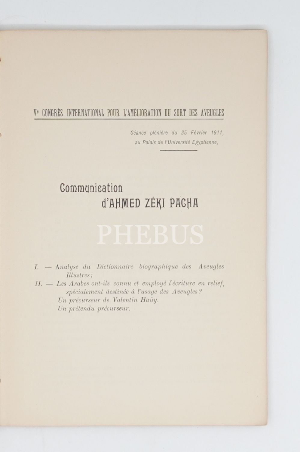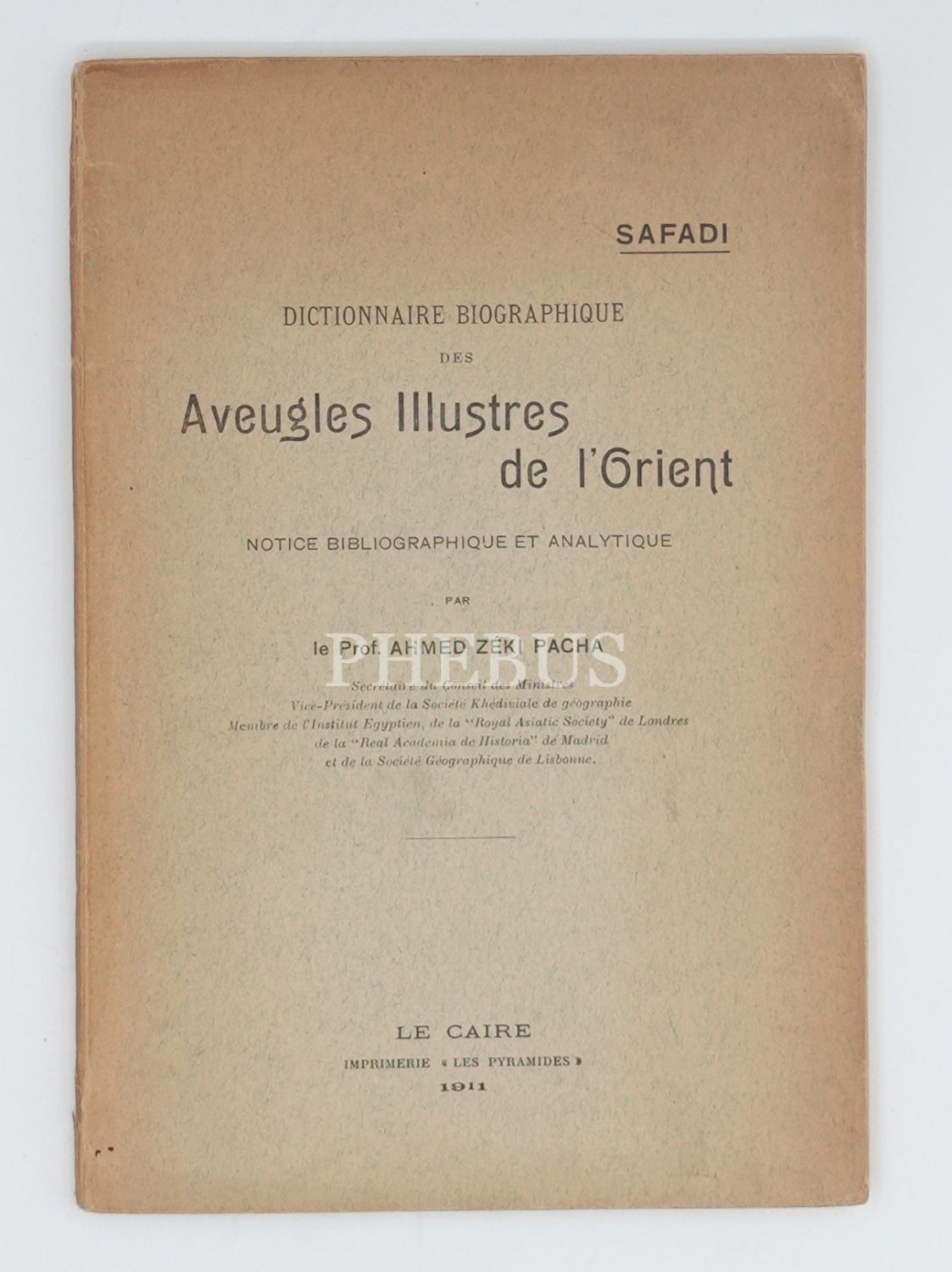 DICTIONNAIRE BIOGRAPHIQUE DES AVEUGLES ILLUSTRES DE L´ORIENT, Ahmed Zeki Pacha (Paşa), 1911, Imprimerie "Les Pyramides", Le Caire (Kahire), 87 sayfa, 16x24 cm...