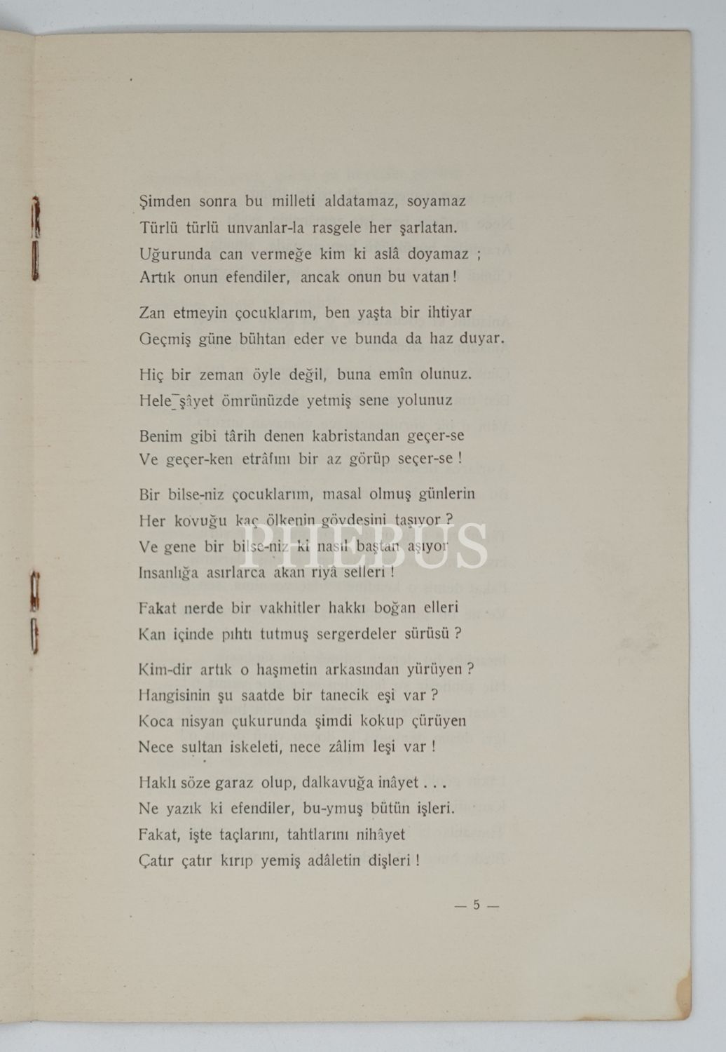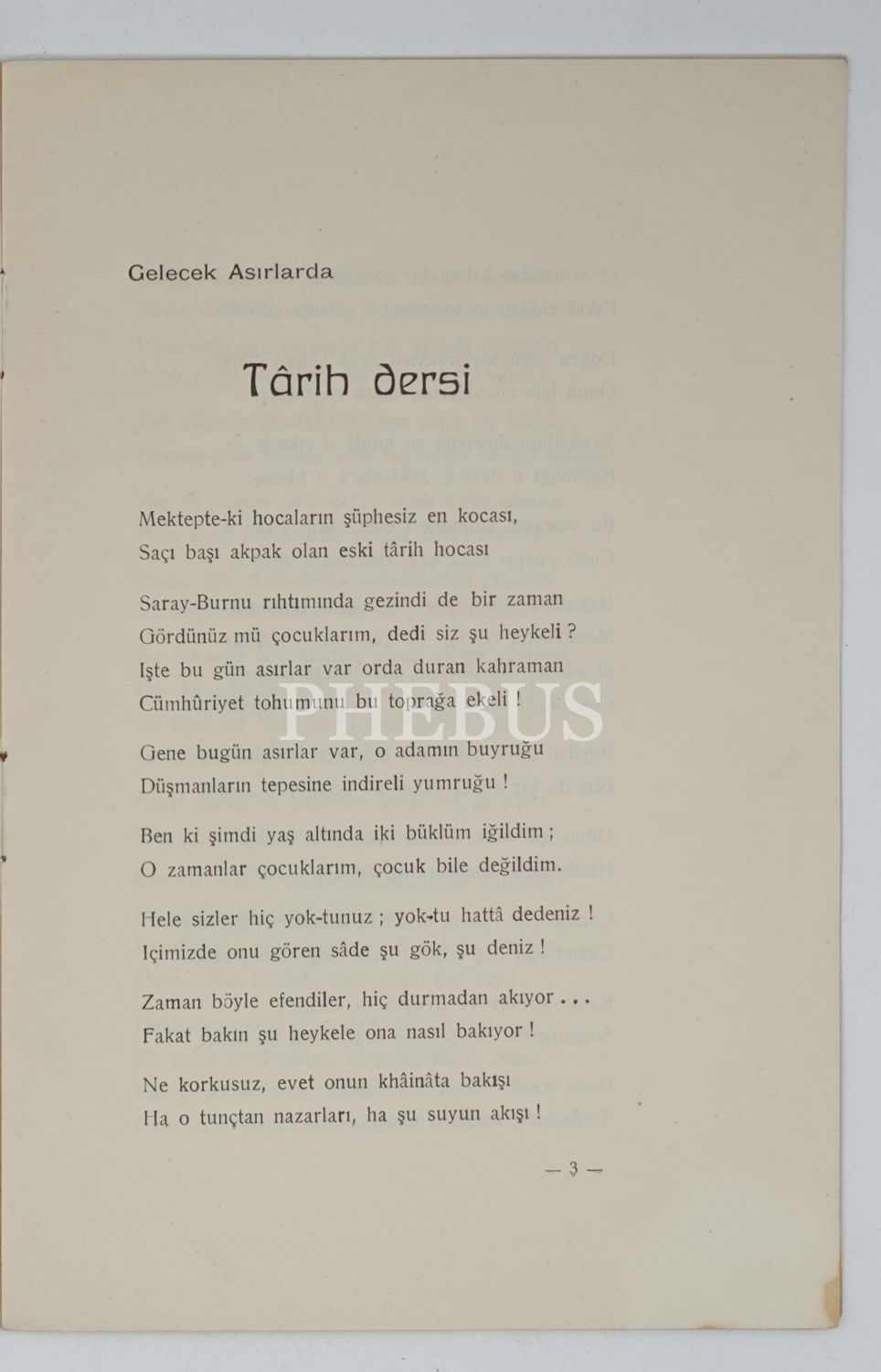 Fazıl Ahmet'in (Aykaç) Cumhuriyet'in kuruluşuna ve kurucusuna bir övgü niteliğindeki bu manzum eseri, 1928 Harf Devrimi sonrasında Latin harfleriyle basılan ilk edebi eser olarak kabul edilir.