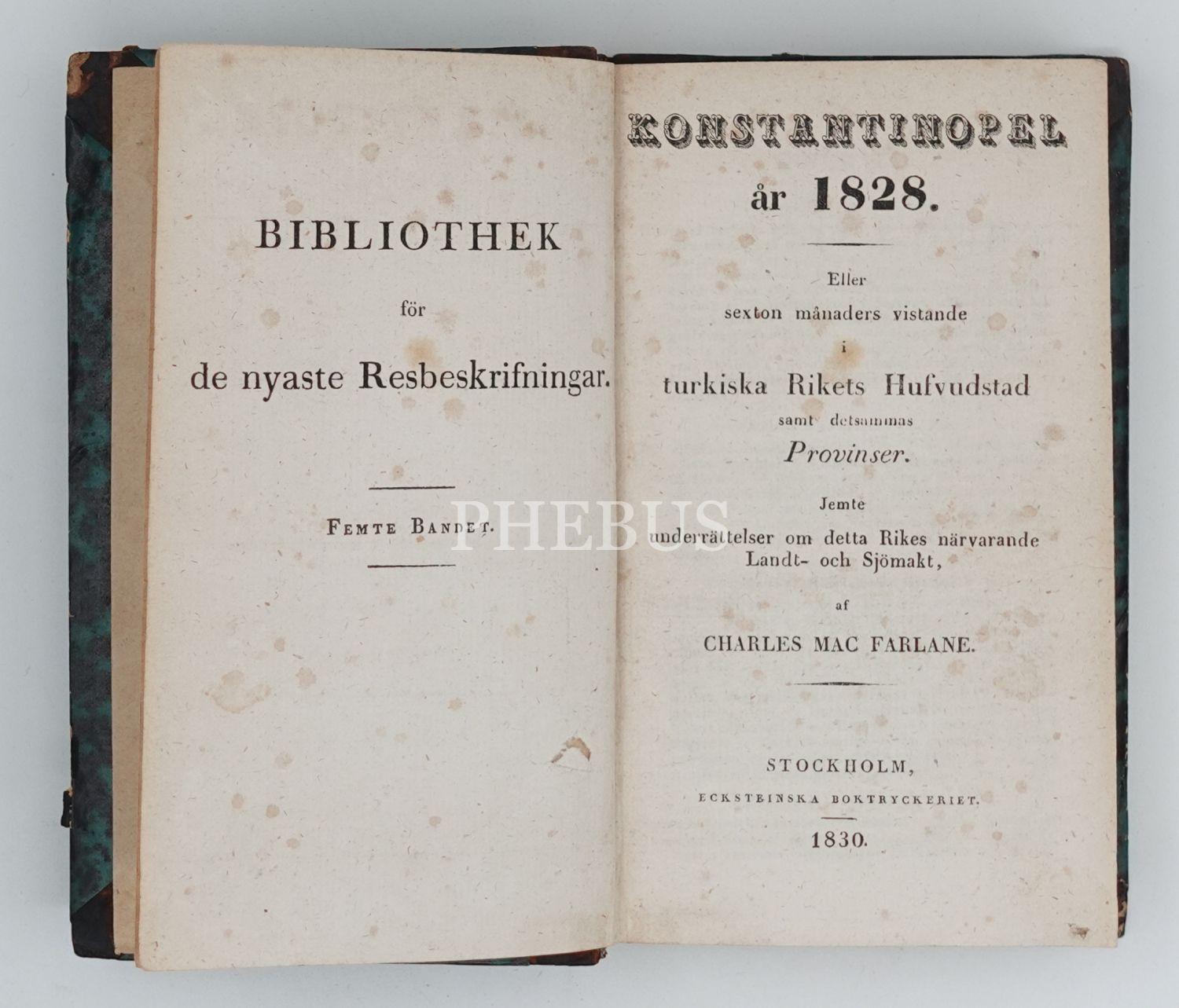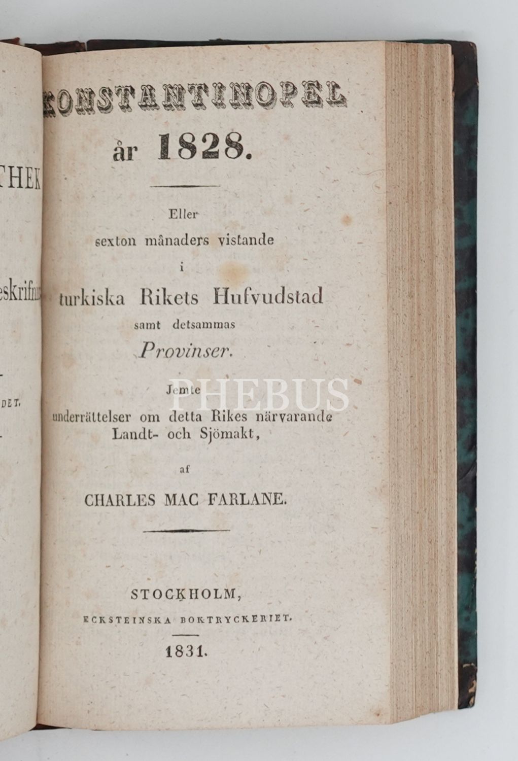 KONSTANTINOPEL AR 1828, Charles Mac Farlane, 1830, Ecksteinska Boktryckeriet, Stockholm, 226 sayfa, 11x18 cm...