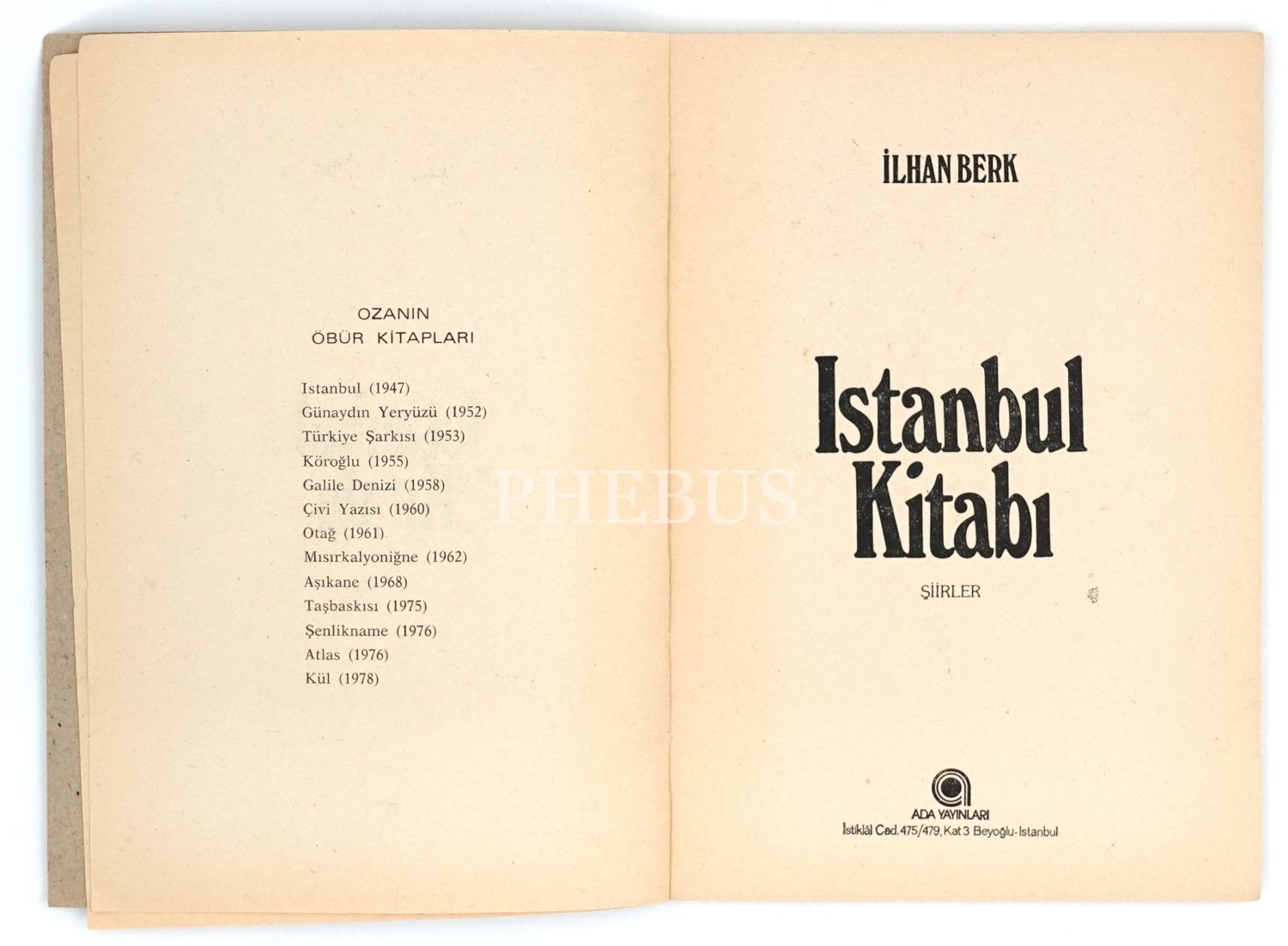 İSTANBUL KİTABI (1947-1980), İlhan Berk, 1980, Ada Yayınları, 72 sayfa, 14x20 cm...