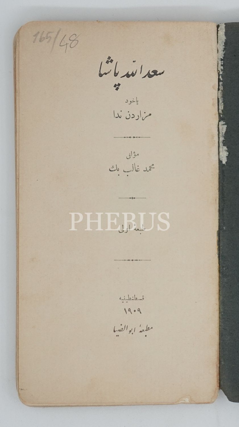 SADULLAH PAŞA YÂHÛD MEZARDAN NİDÂ, Mehmed Galib Bey, 1909, Ebuzziya Matbaası, 124 s., 9x18 cm…