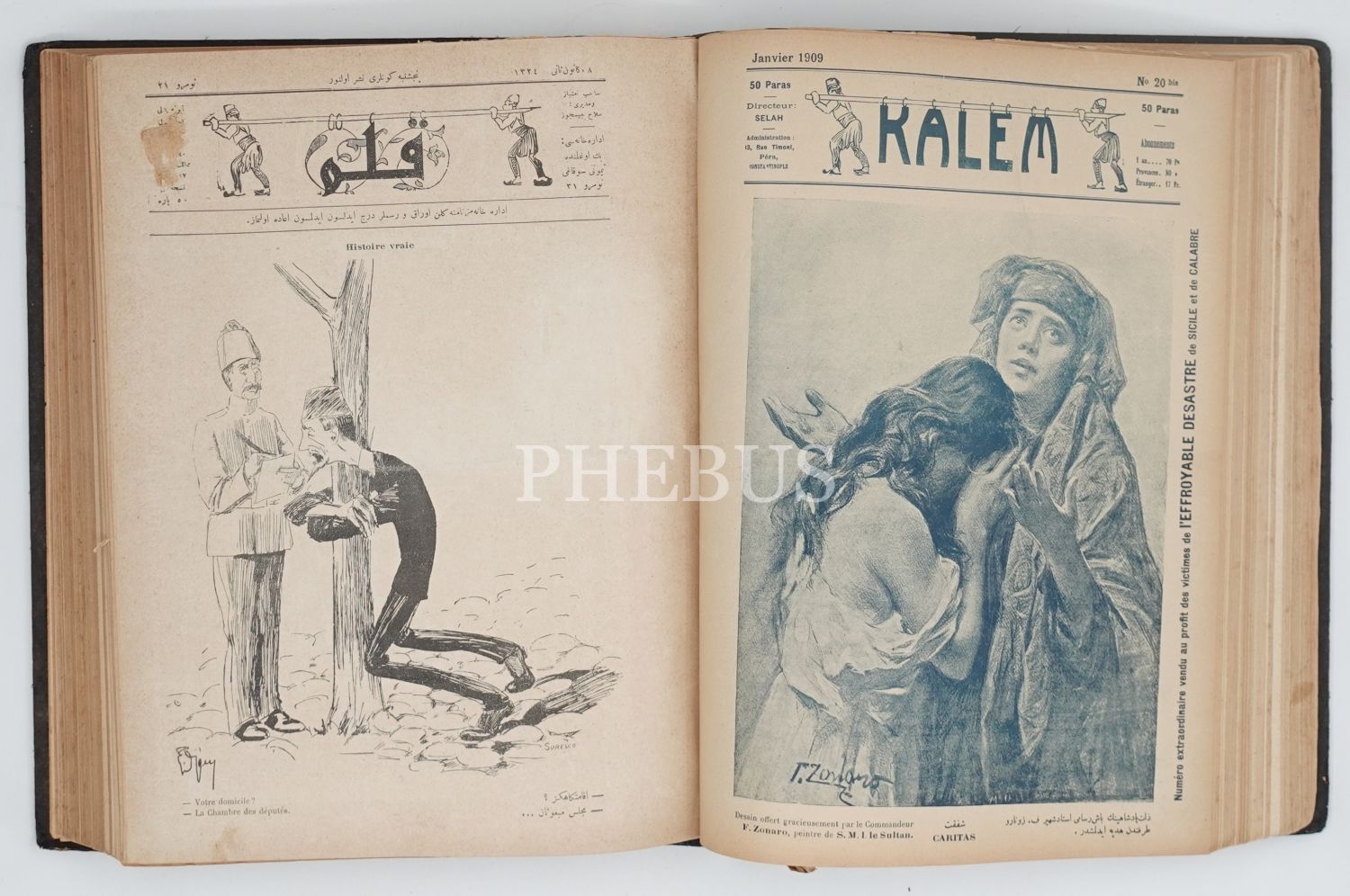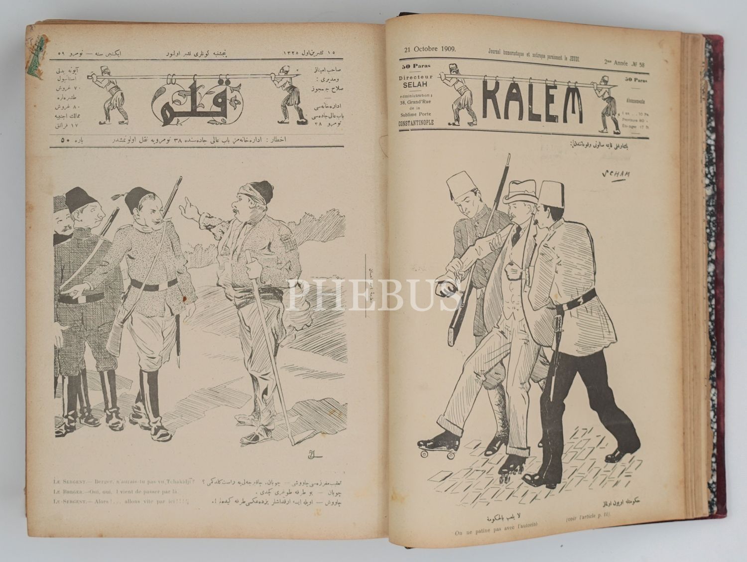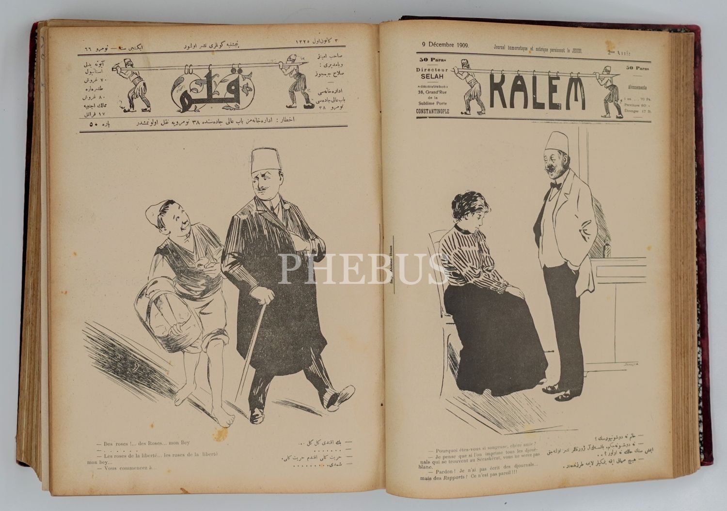 KALEM, Edebi Mizah Gazetesi´nin, iki cilt halinde 130 sayılık tam takımı, 1908 - 1911, 23x30 cm...