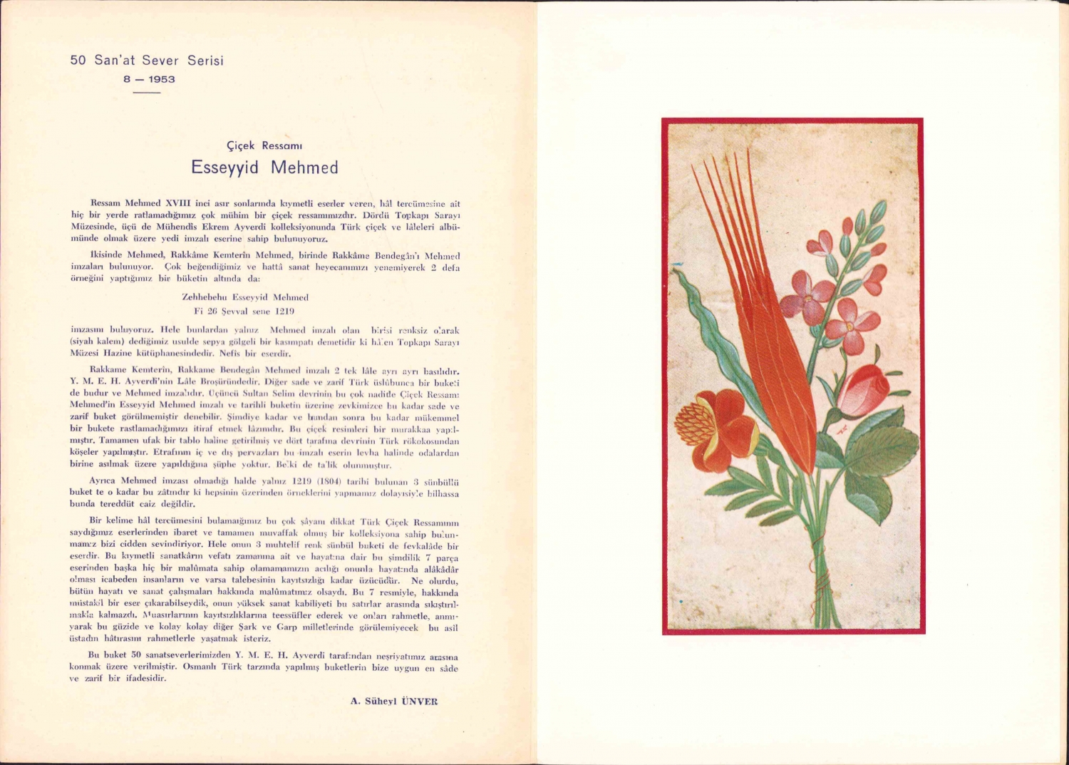 50 San'at Sever Serisi:8 Çiçek Ressamı Mehmed ve Bir Demeti, A. Süheyl Ünver, İstanbul, 1953, 3 sayfa, 16x24 cm