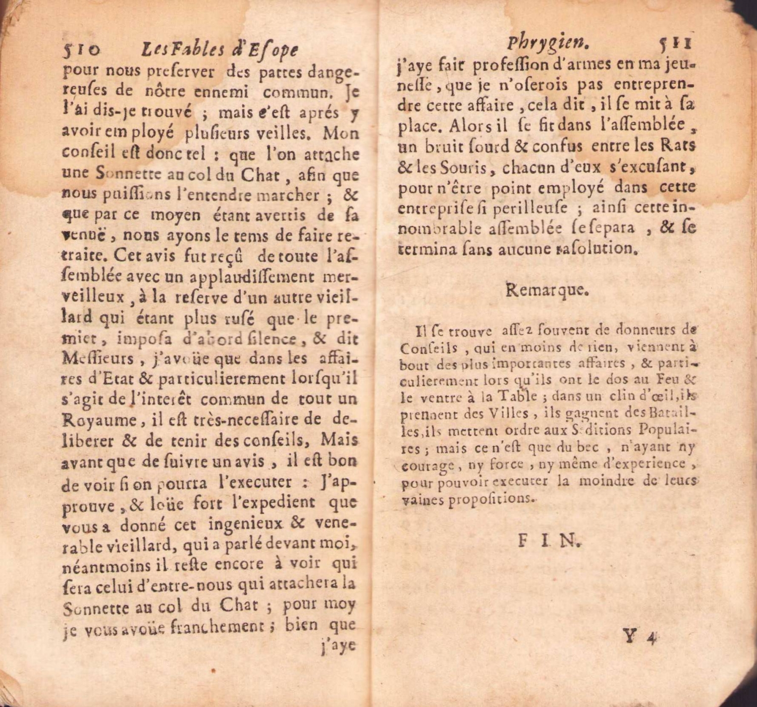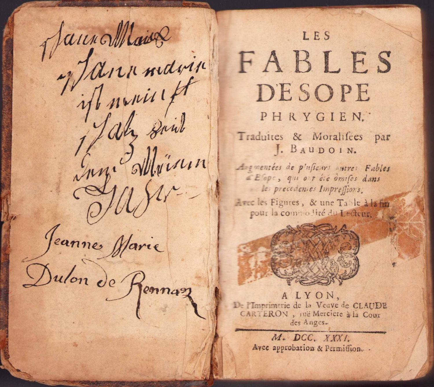 Fransızca Les Fables Desope, J. Baudoin, Alyon, haliyle, arka kapak eksik, 511 sayfa, 8x13 cm