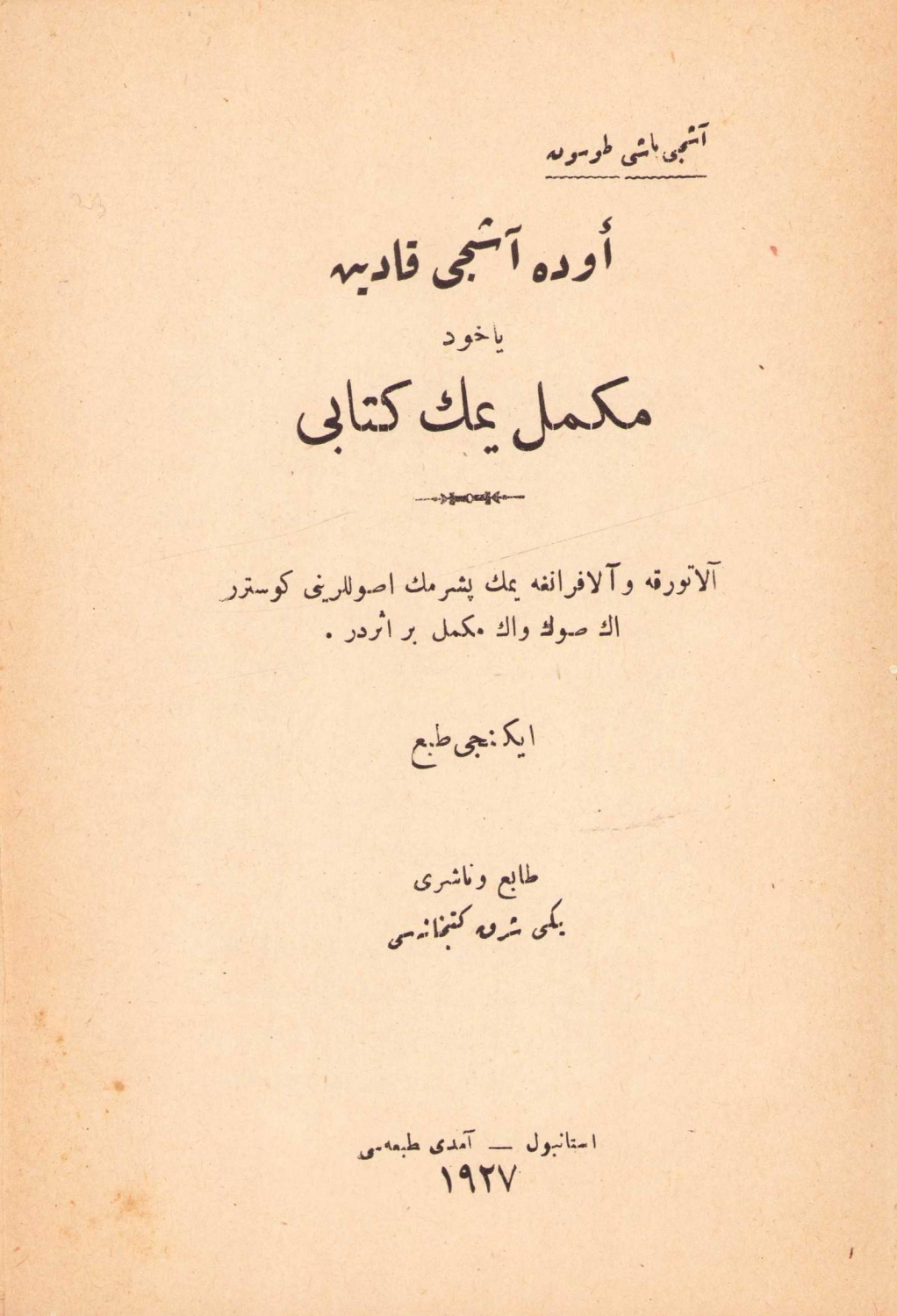 Osmanlıca Evde Aşcı Kadın yahud Mükemmel Yemek Kitabı, Aşçıbaşı Tosun, ikinci baskı, Amedi Matbaası, İstanbul, 1927, sırt kısmı haliyle, 339 sayfa, 14x20 cm, ÖZEGE; 5257