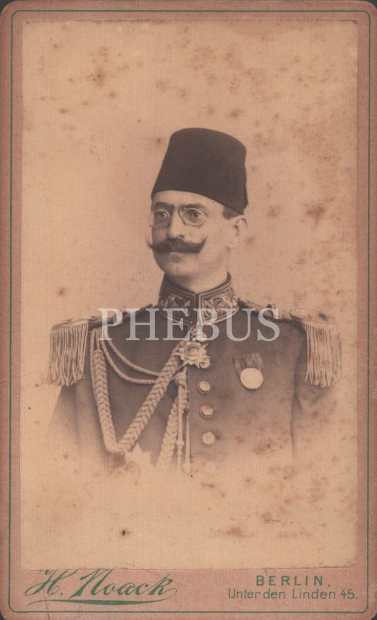 Madalyalı Osmanlı paşasının stüdyo hatıra fotoğrafı (CDV), H. Noack Photogr. art. Atelier (Berlin, Almanya), 10x6 cm...