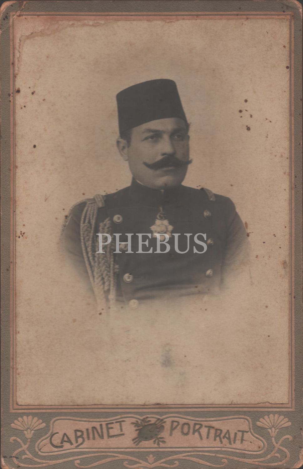 Madalyalı Osmanlı subayı Muhyiddin Bey´in, stüdyo hatıra kabin fotoğrafı, 11x17 cm...