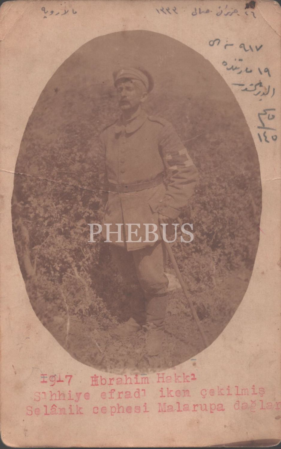 İbrahim Hakkı Efendi´nin, 1. Dünya Savaşı´nda Selanik cephesi Malarupa dağlarında çekilmiş fotoğrafı, 14x9 cm...