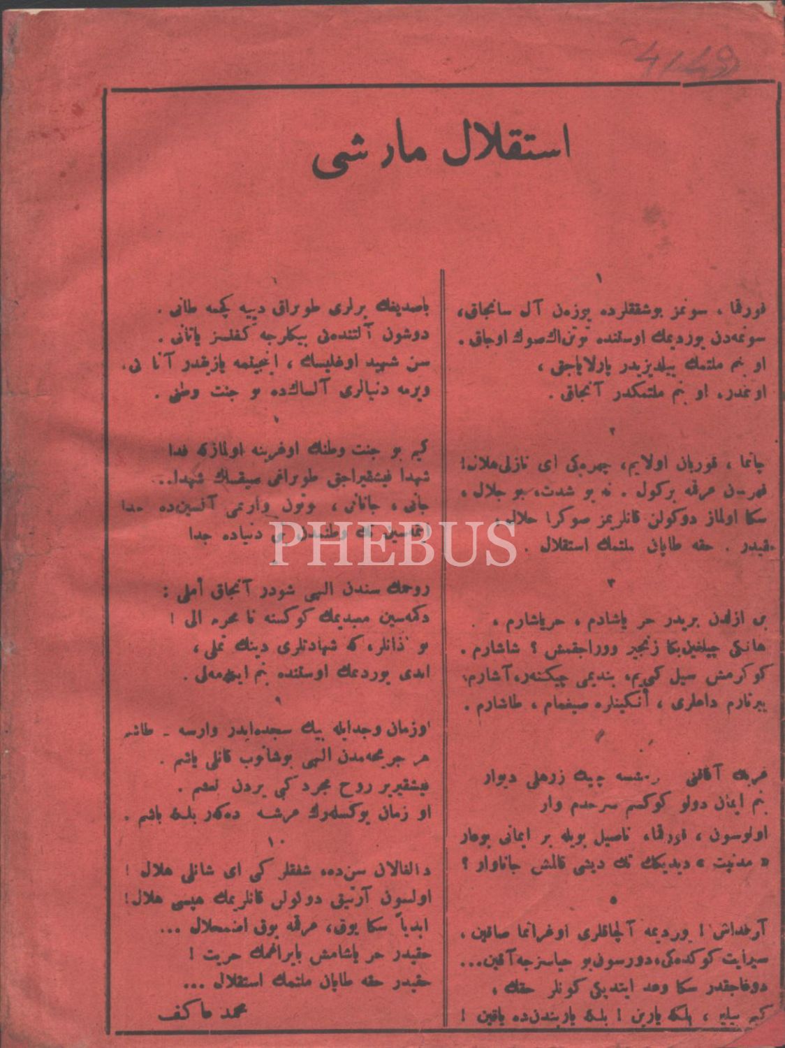 Arka yüzünde, İstiklal Marşı yazılıdır.