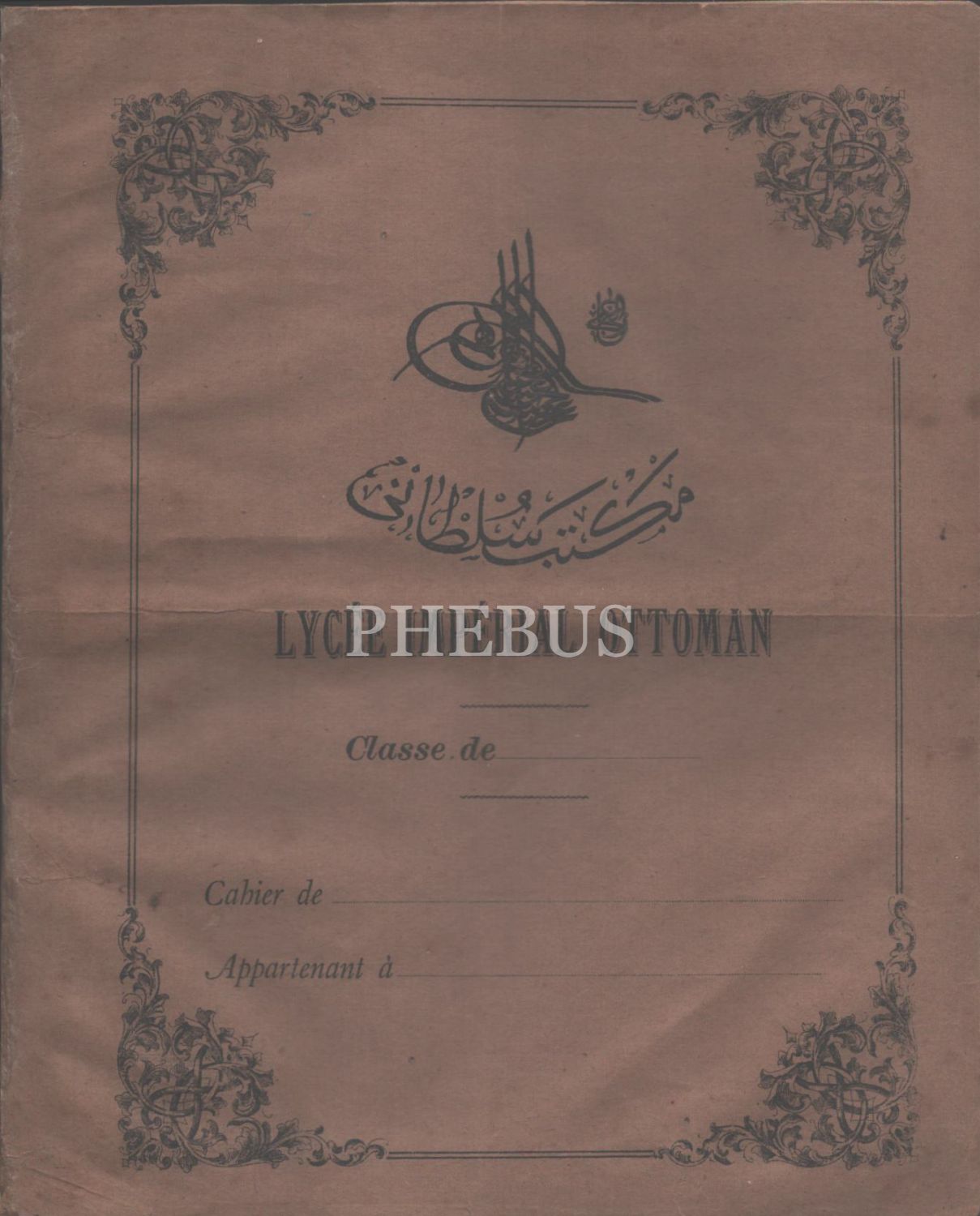 II. Abdülhamid tuğralı, "Mekteb-i Sultanî" defteri, Osmanlıca ve Fransızca, 17x21 cm...