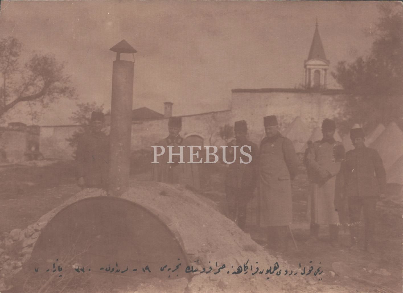Fotoğrafın üzerinde yer alan Osmanlıca not, "Birinci Kolordu Hümayûn Karargahı´nda hamra fırınının tecriyesi. 19 Teşrinievvel 330 Pazar" şeklindedir.