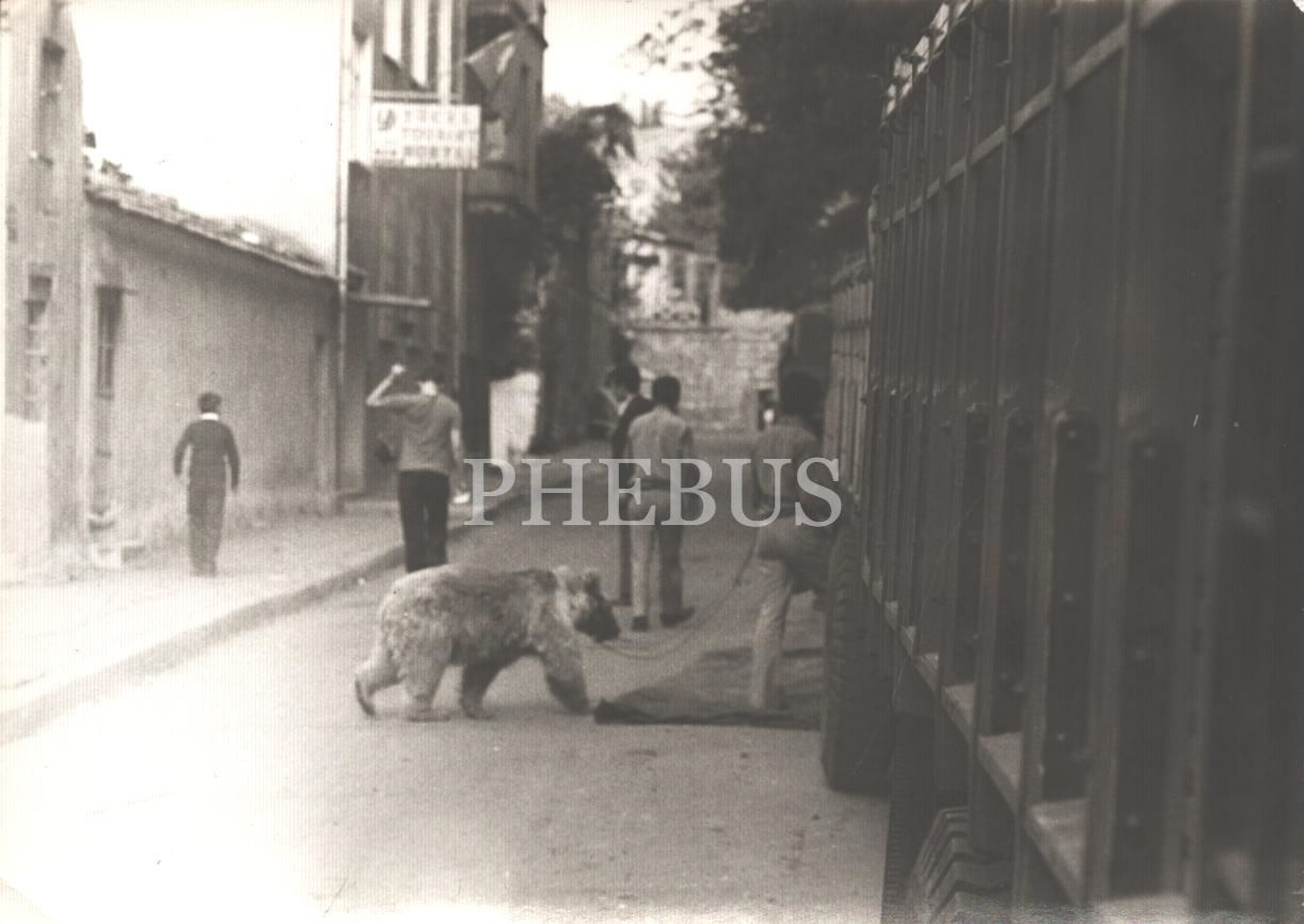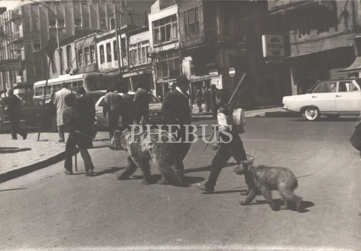 Ayı ve oynatıcısının İstanbul sokaklarında çekilmiş 4 adet fotoğrafı, 10x8 cm...