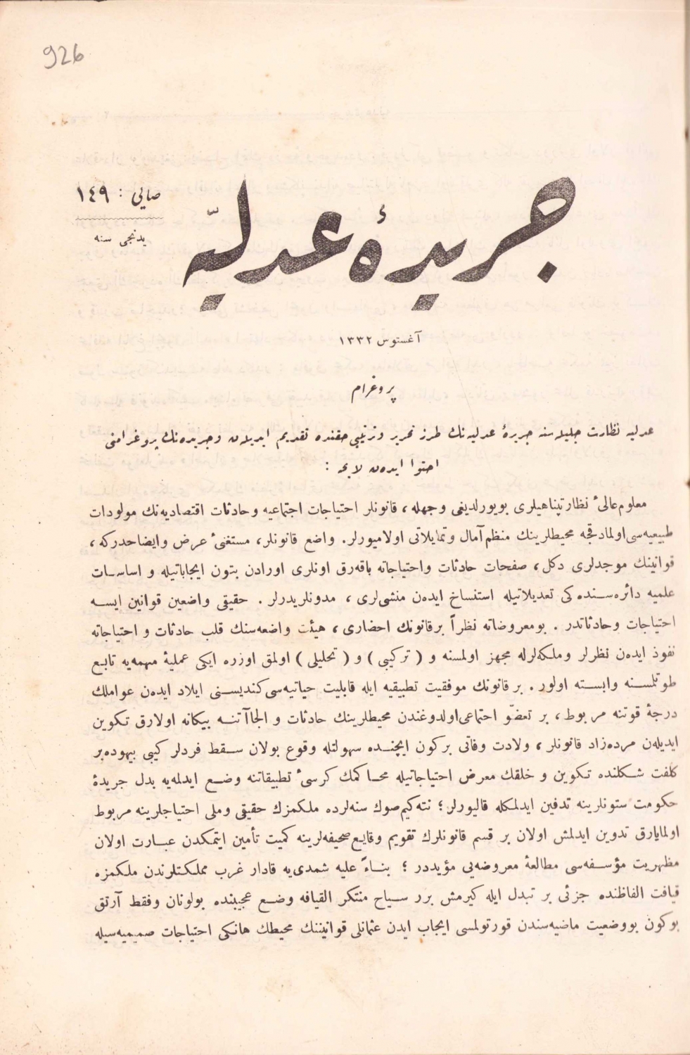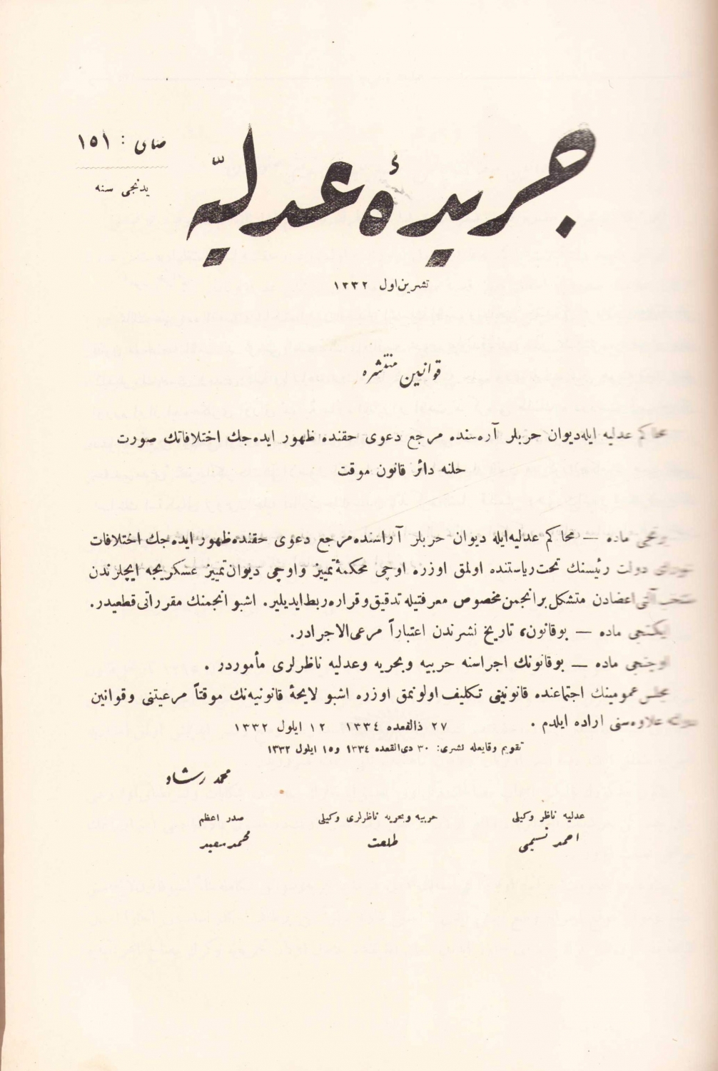 Osmanlıca Ceride-i Adliye mecmuası 149 - 167 sayıları tek ciltte bir arada, baskı 1332 tarihli, 1211 sayfa, 20x28 cm