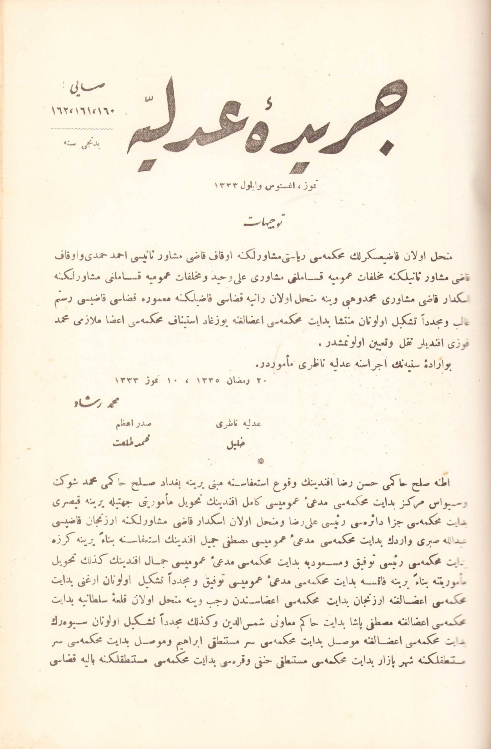 Osmanlı Devleti Adliye Nezareti tarafından çıkarılan ve Cumhuriyet döneminde Adalet Bakanlığı’nca değişik adlarla yayımı sürdürülen dergi.