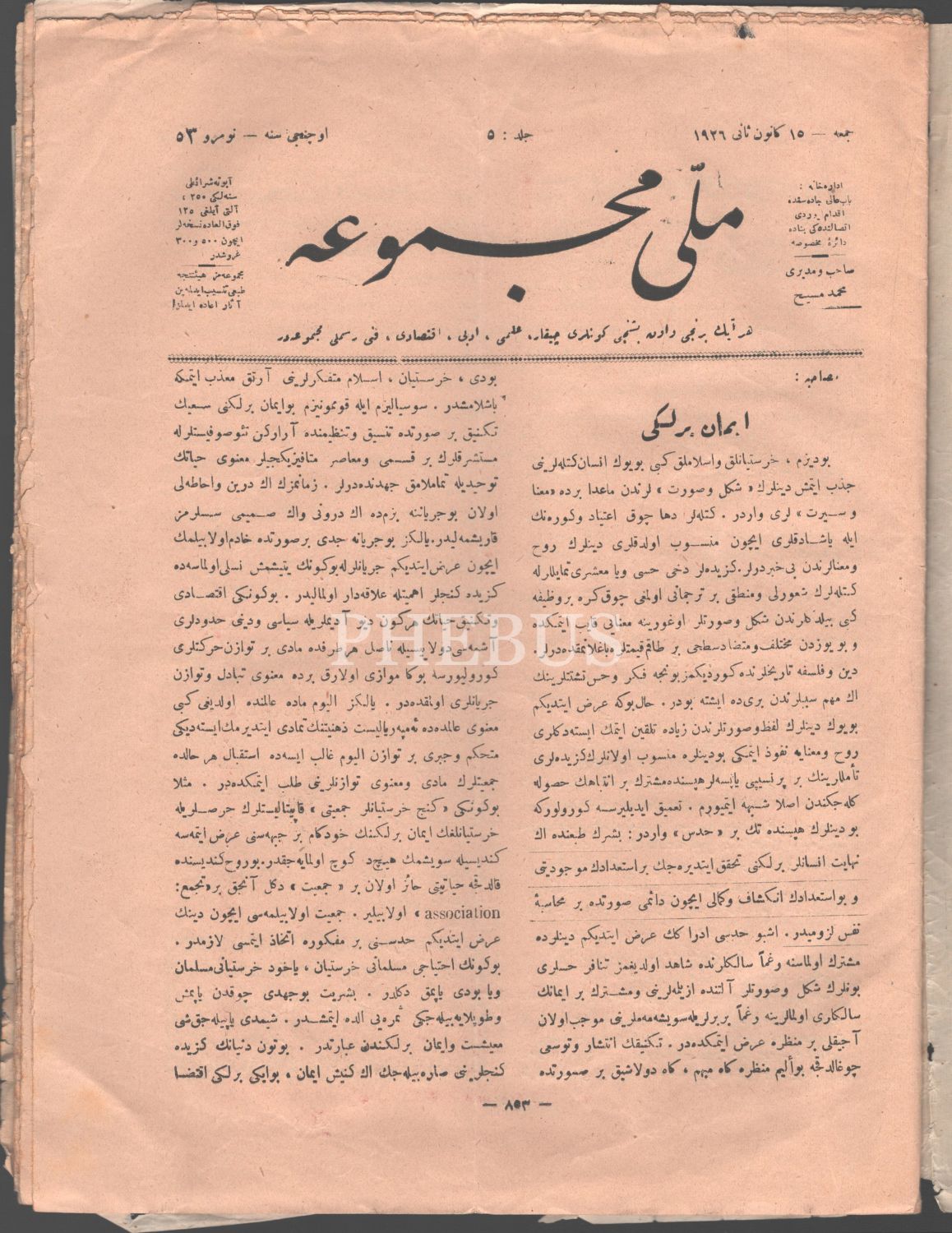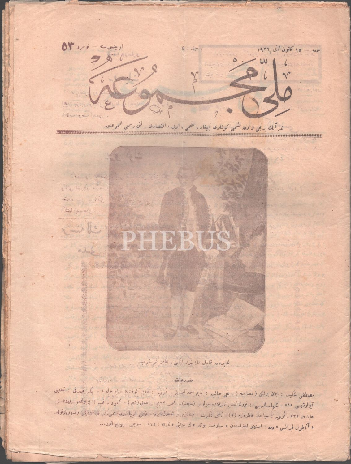 "İlmi, Edebi, İktisadi, Fenni, Resimli Mecmua" MİLLİ MECMUA´nın, 15 Kanunisani 1926 tarihli 53. sayısı, 36 sayfa, 24x31 cm...