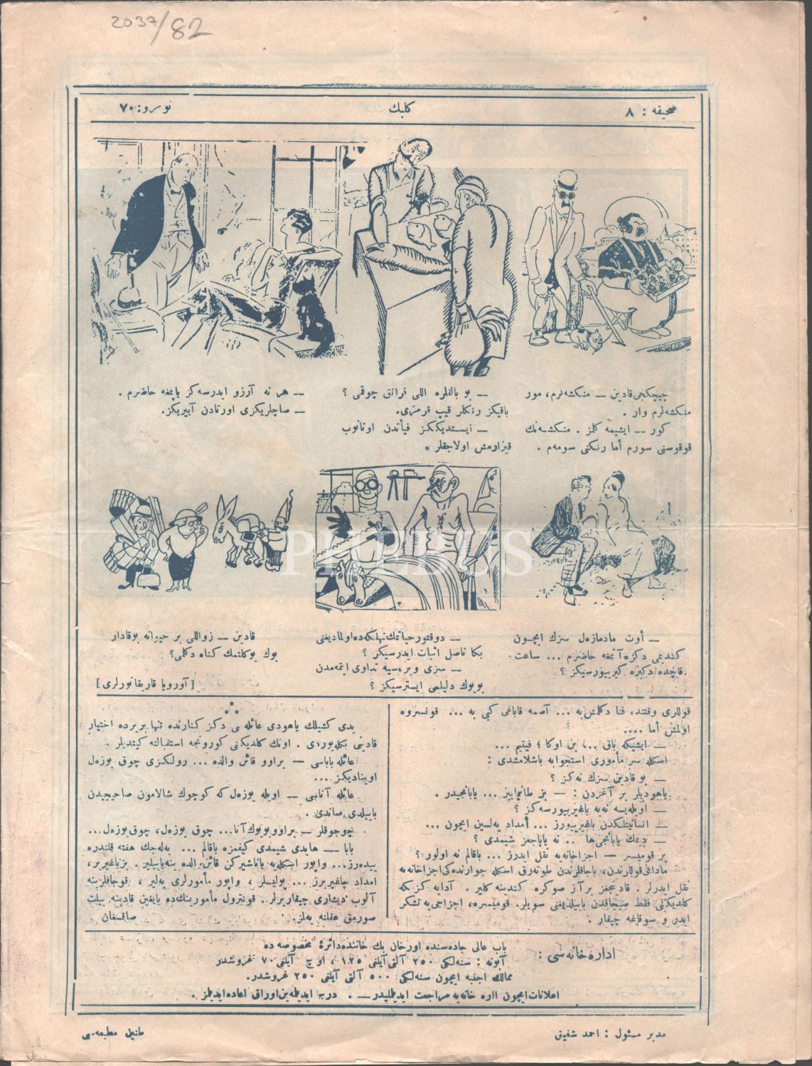 "Edebi mizah mecmuası" KELEBEK´in, 7 Ağustos 1340 tarihli 70.sayısı, 8 sayfa, 24x32 cm...