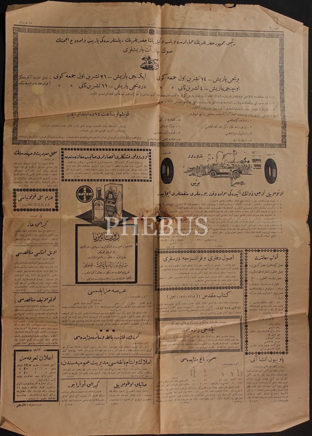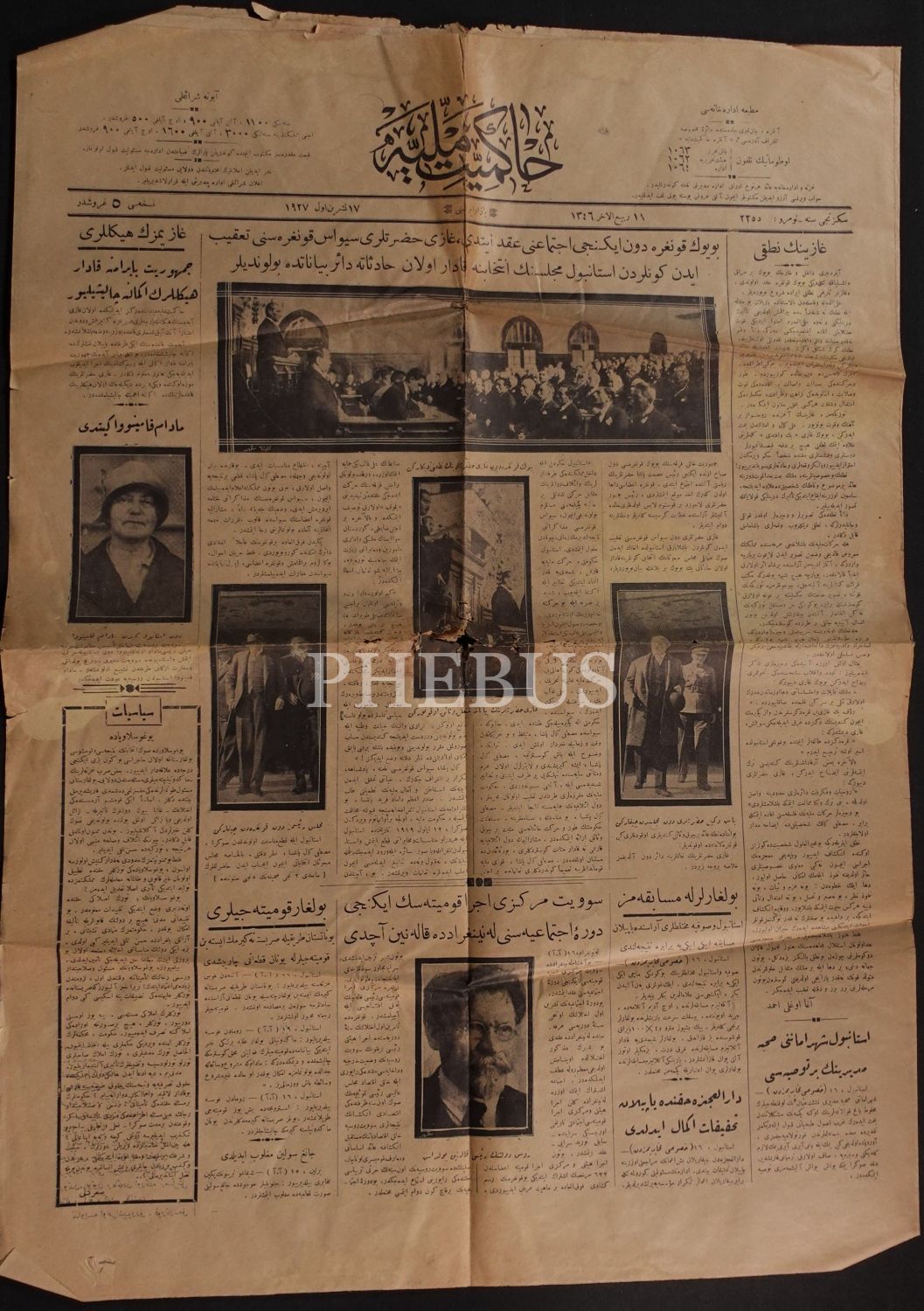 Mustafa Kemal Atatürk´ü, Cumhuriyet Halk Fırkası 2. kongresinde kürsüde nutuk irad ederken gösteren, Osmanlıca HAKİMİYET-İ MİLLİYE gazetesi, 18 Teşrinievvel 1927, 6 sayfa, 64x45 cm...