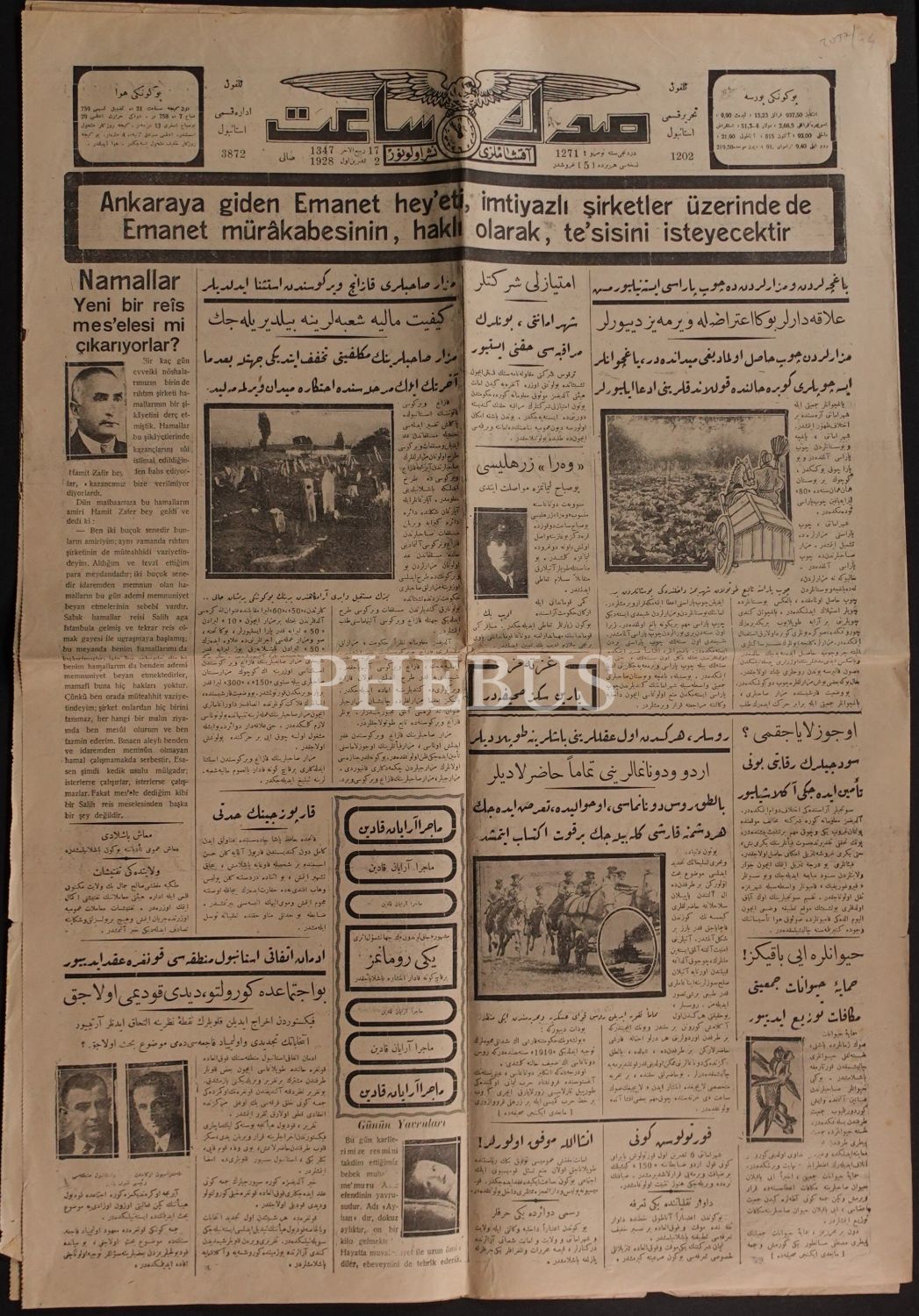 Osmanlıca ve Latin harfli SON SAAT gazetesi, 2 Teşrinievvel 1928, 6 sayfa, 62x44 cm...