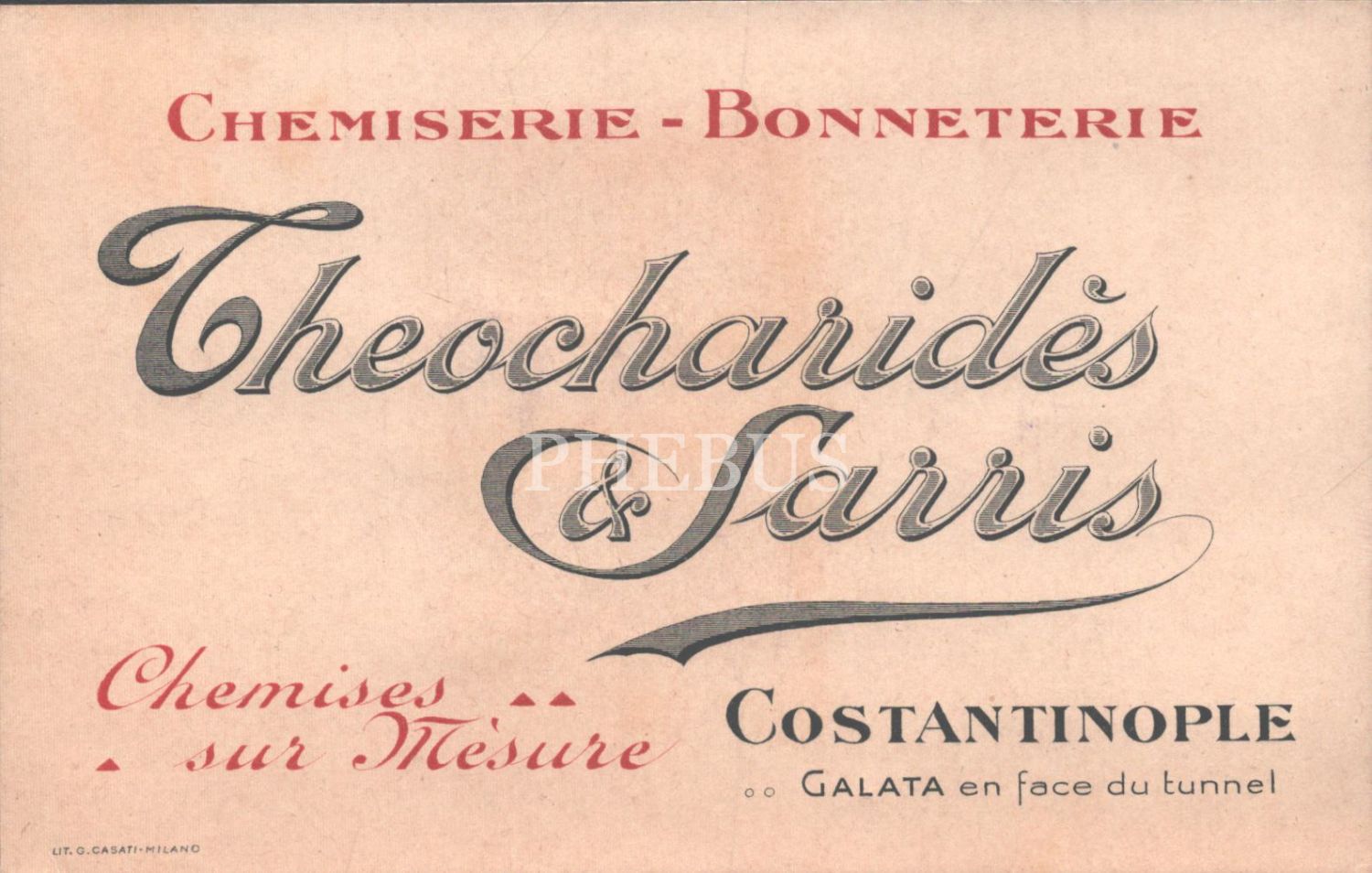 İstanbul´da Theocharides & Sarris Çorap Mağazası´nın Fransızca iş yeri kartı, 14x9 cm...