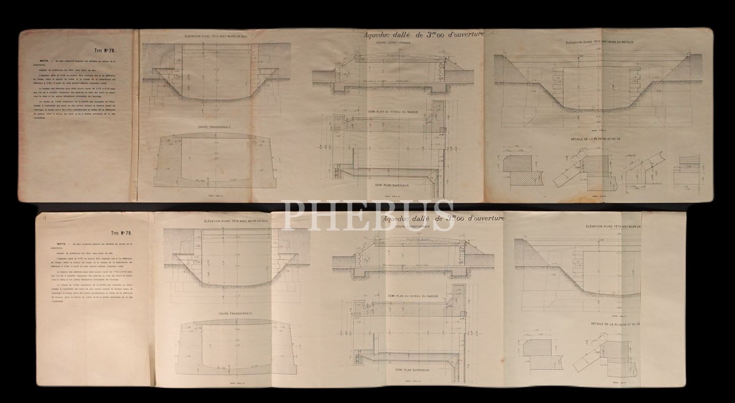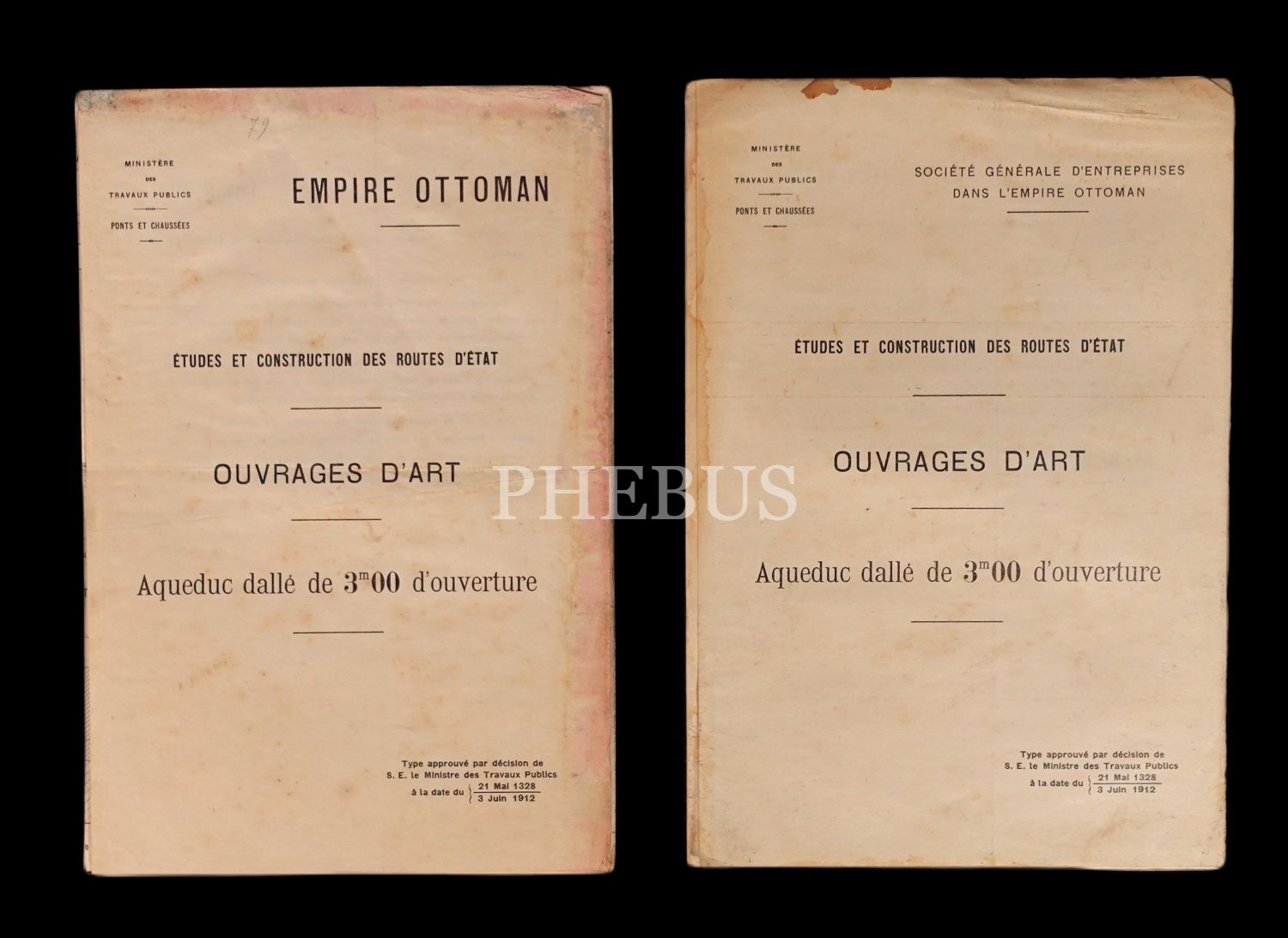 Osmanlı Osmanlı İmparatorluğu Bayındırlık Bakanlığı antetli 2 adet Fransızca su kemeri projesi, 1912, 31x102 cm
