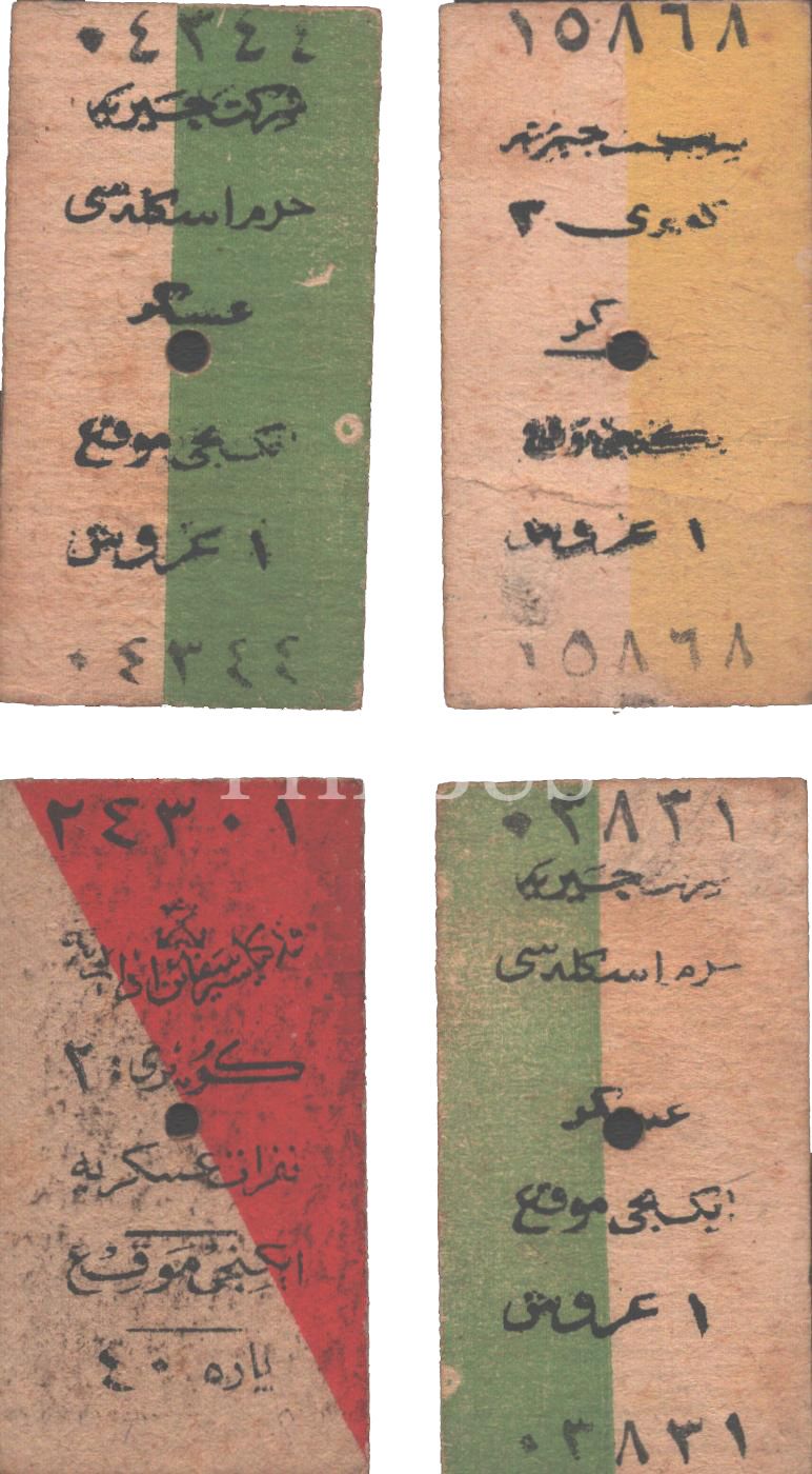 Şirket-i Hayriye vapurlarının 4 adet Osmanlıca bileti, 6x3 cm...