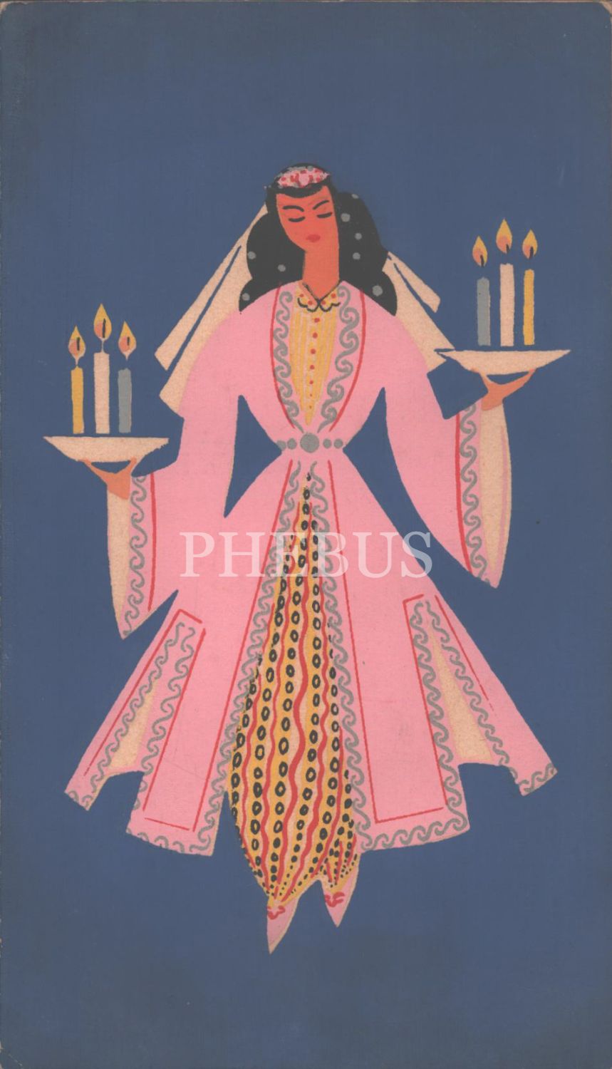 Çayda Çıra oynayan kadın görselli, 19 dilde yılbaşı tebrik kartı, 12x21 cm...