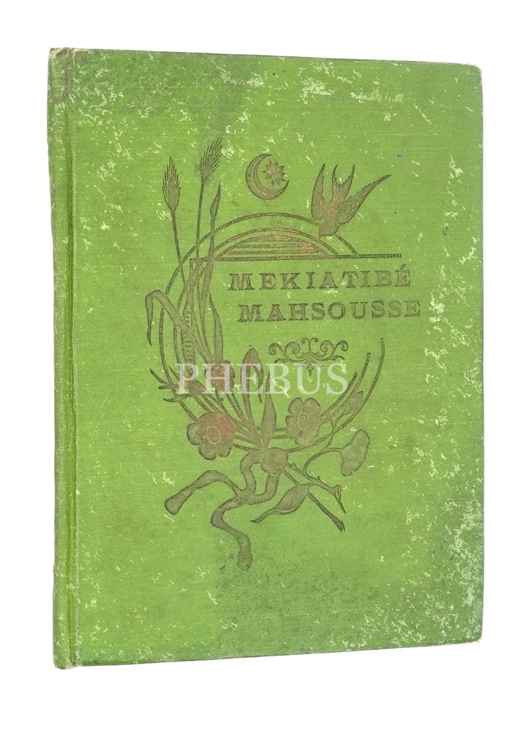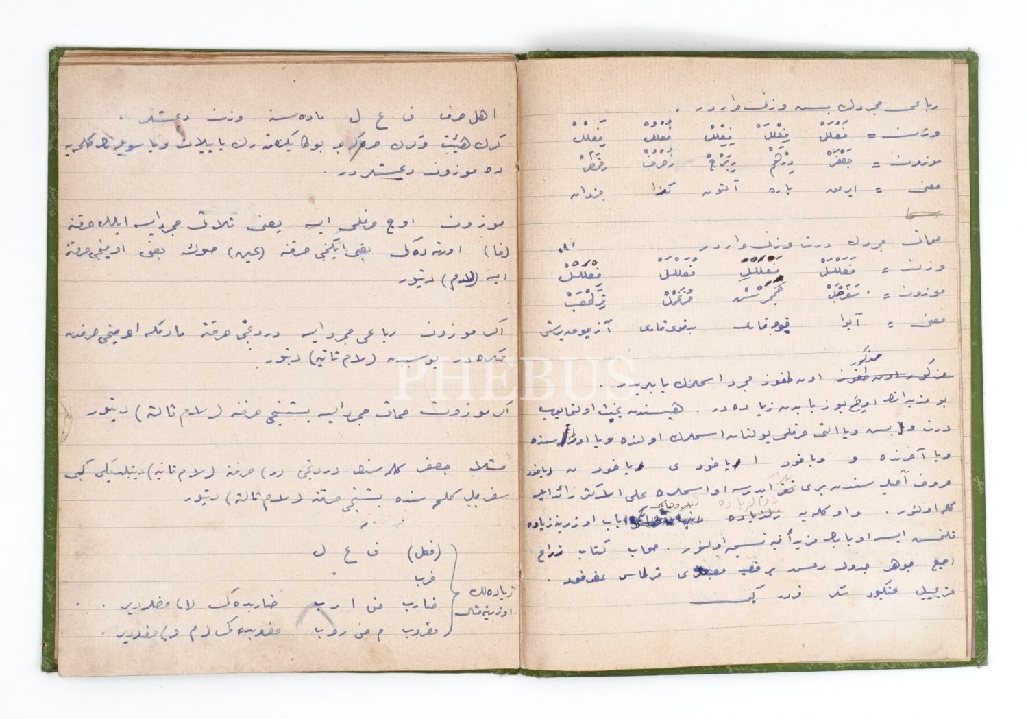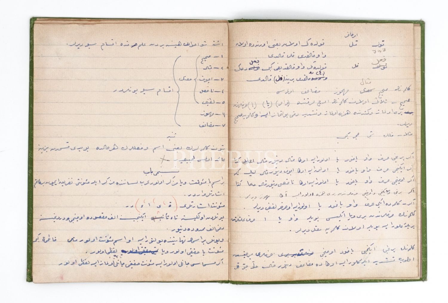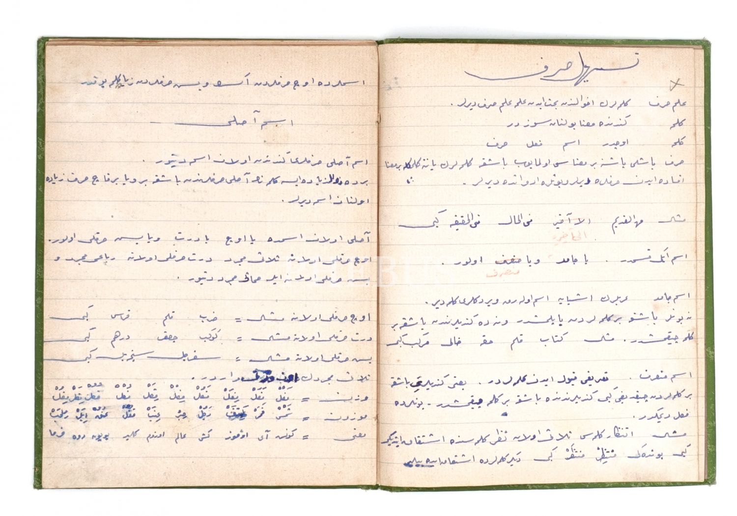 Tuğralı ve Ay yıldızlı bez cildi içerisinde "Mekteb-i Mahsusa Talebesi" defteri, Osmanlıca ve Fransızca, 16x21 cm...