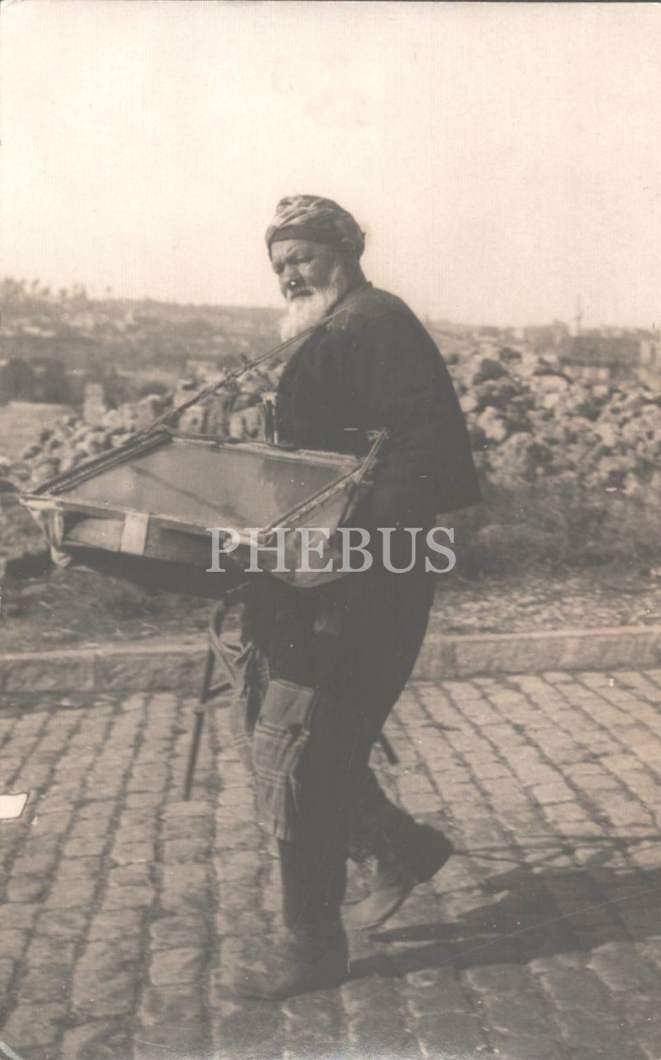 Boynunda tezgahıyla İstanbul kaldırımlarını çiğneyen bir seyyar börekçi, arka yüzü Fransızca açıklamalı, 9x14 cm...