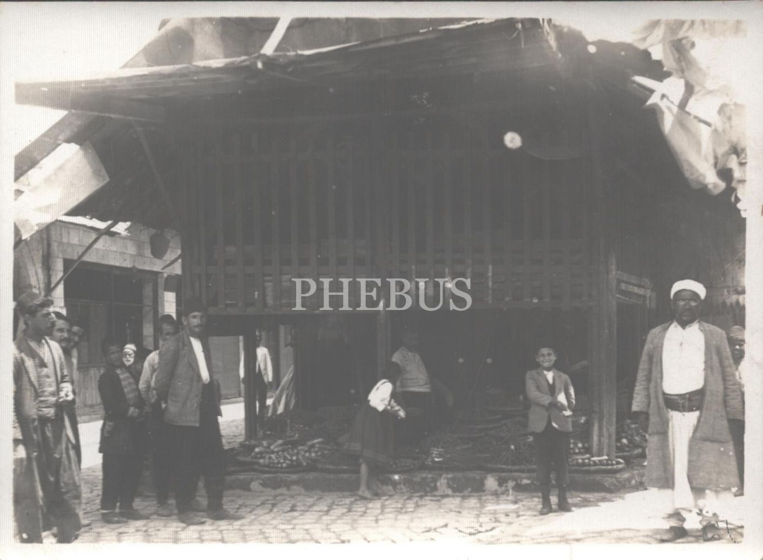 Osmanlı döneminden satıcı ve müşterilerin görüldüğü bir pazar yeri fotoğrafı, 12x8 cm...